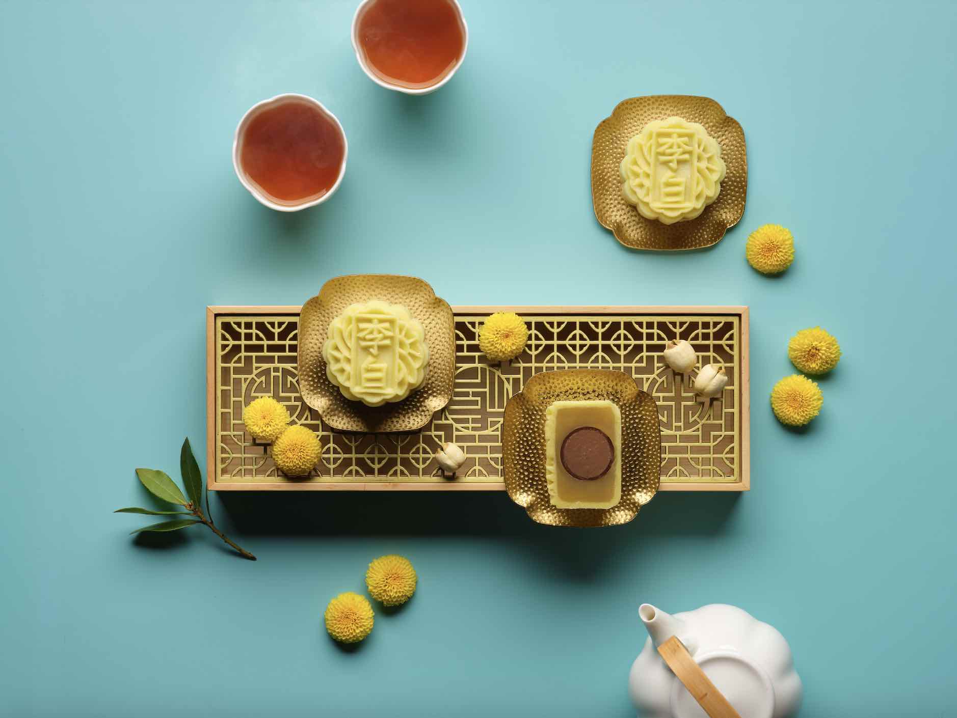 In addition to the all-time favourite snowskin mooncakes –Mini Snowskin Champagne ($94), Mini Snowskin Lychee Martini ($94) and Mini Snowskin Sea Salt Truffle Dark Chocolate ($94), Li Bai has curated a new flavour. The new Mini Snowskin Chrysanthemum ($94) lends a subtle floral aroma amidst the creamy white lotus seed paste.