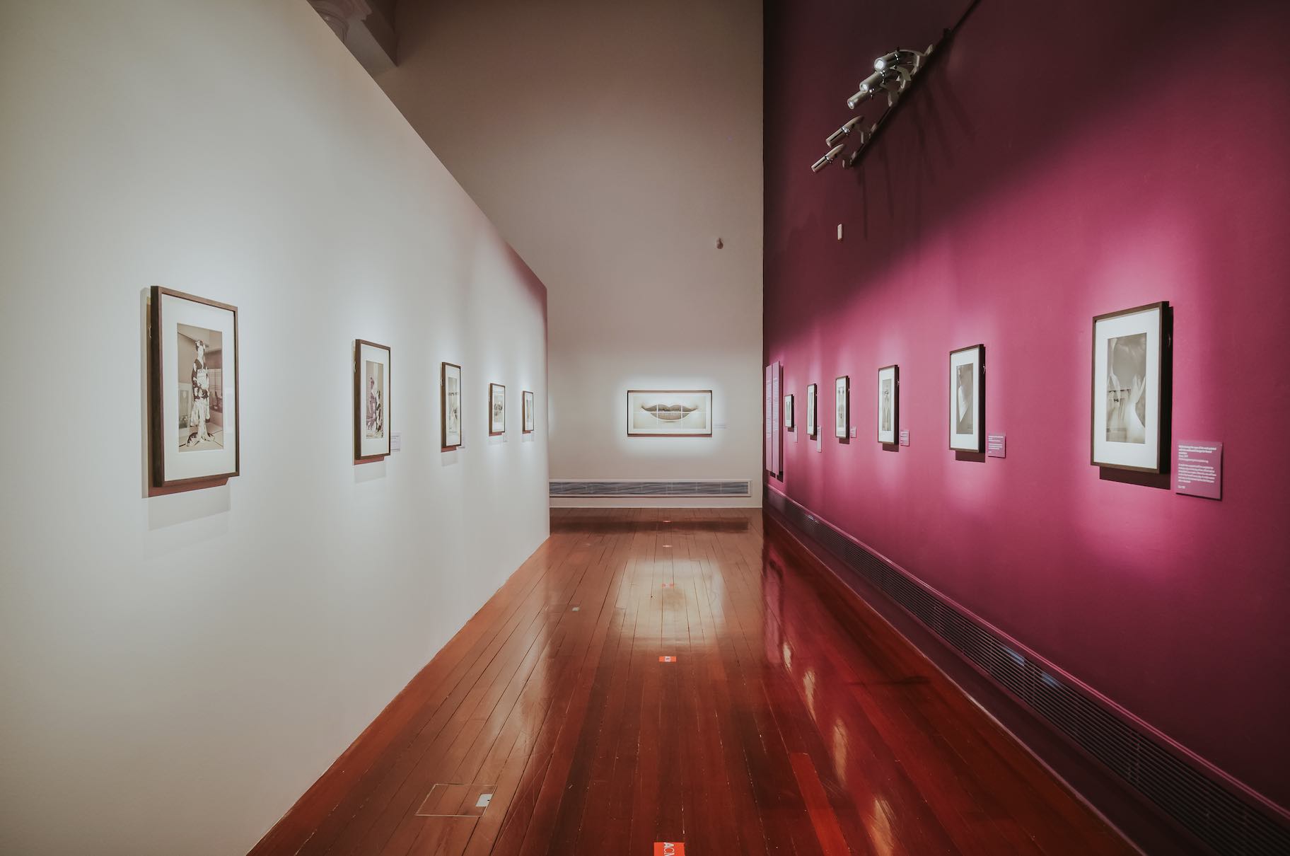 The exhibition takes a winding path through the two sections, but intersects in a contemplative space between that contrasts ukiyo-e artist Utagawa Hiroshige’s woodblock print of the Sanjō Bridge – the final stop in his well-loved series Fifty-Three Stations of the Tōkaidō – with Russel Wong’s photograph of the same bridge, captured from the spot where he imagined Hiroshige would have visualised the image depicted in his print. This juxtaposition of past and present, both in medium and subject, seeks to prompt a re-evaluation of lines drawn between traditional and contemporary and reflection on how past trends and lifestyles can echo surprisingly vividly in today’s modern society.