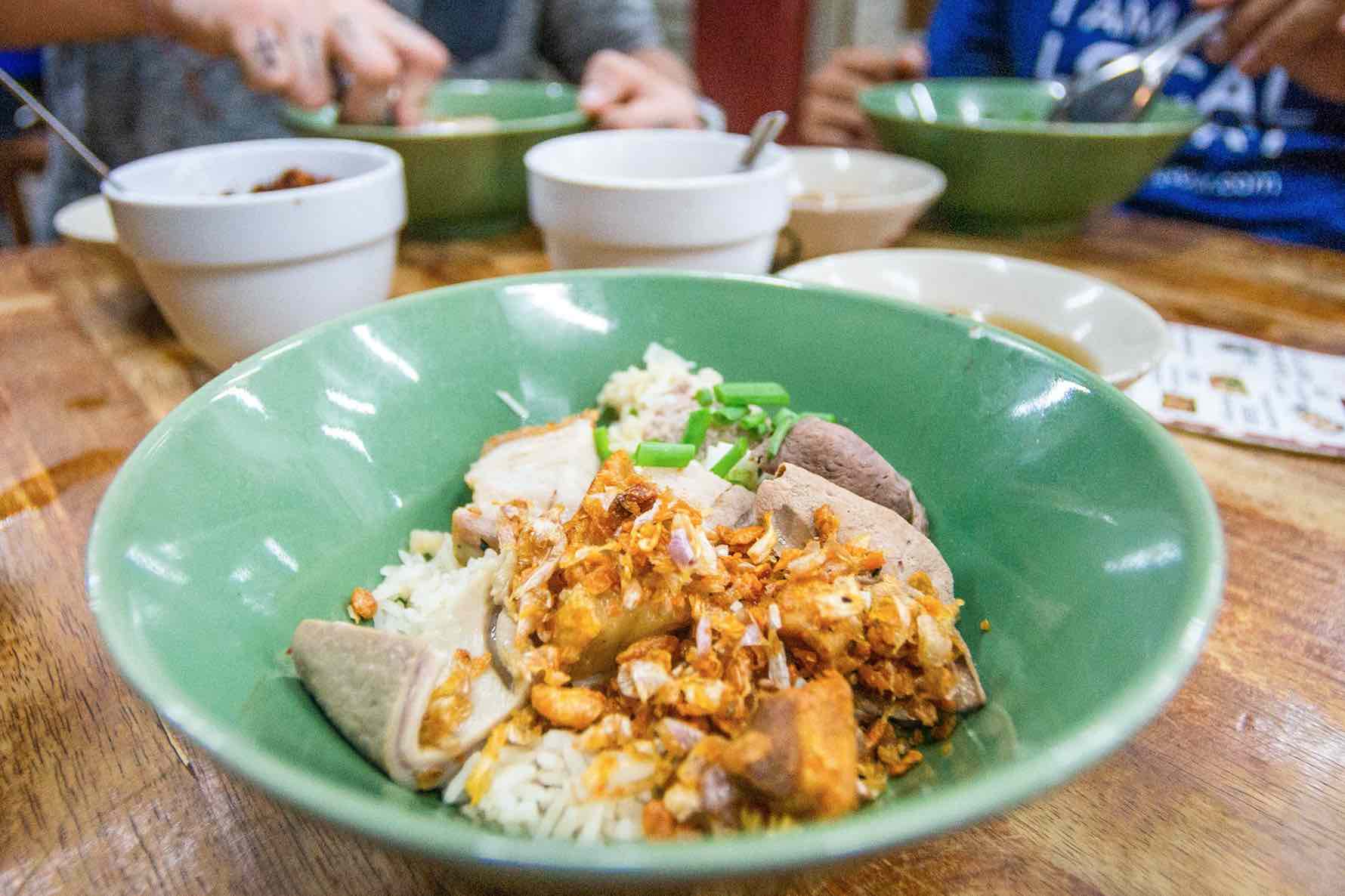 We bet you haven’t tried porridge like this. While porridge is usually watery, Khao Tom Haeng puts a dry spin on things that definitely pays off. It’s an absolute can’t-miss in Phuket, ask any local. The dry porridge is topped with crispy pork and pork insides served with a separate soup that completes the combo just right.