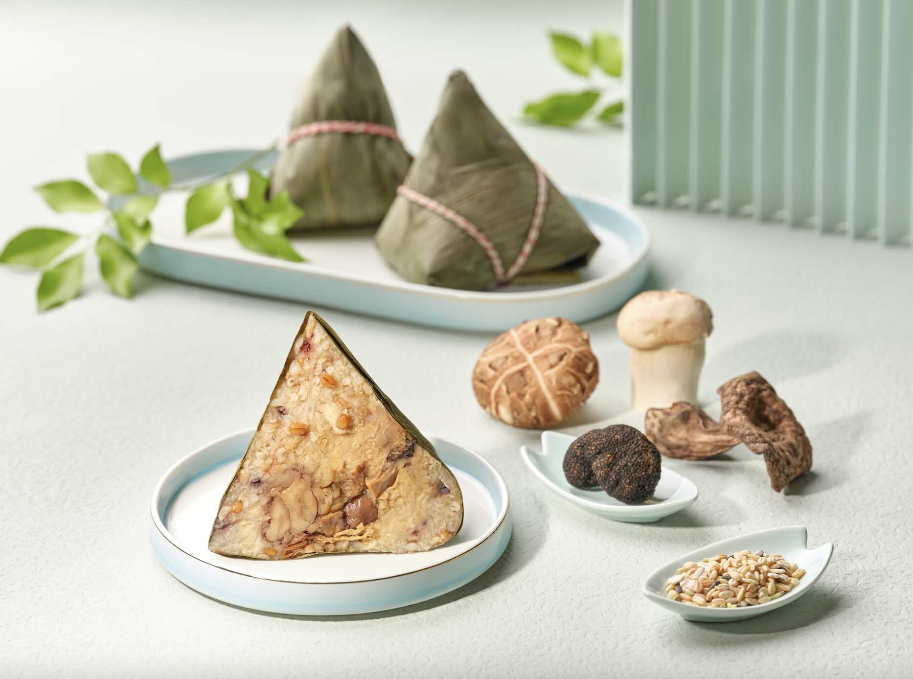 Those seeking a healthier and no less sumptuous experience would enjoy Jade’s returning Truffle and Trio Mushroom Five-grain Rice Dumpling 松露三菇五谷素粽 (S$20 nett). This vegetarian option contains an umami-rich mixture of five grains, truffle paste, fresh king oyster mushroom, matsutake mushroom, black mushroom, chestnut, and plant-based meat.