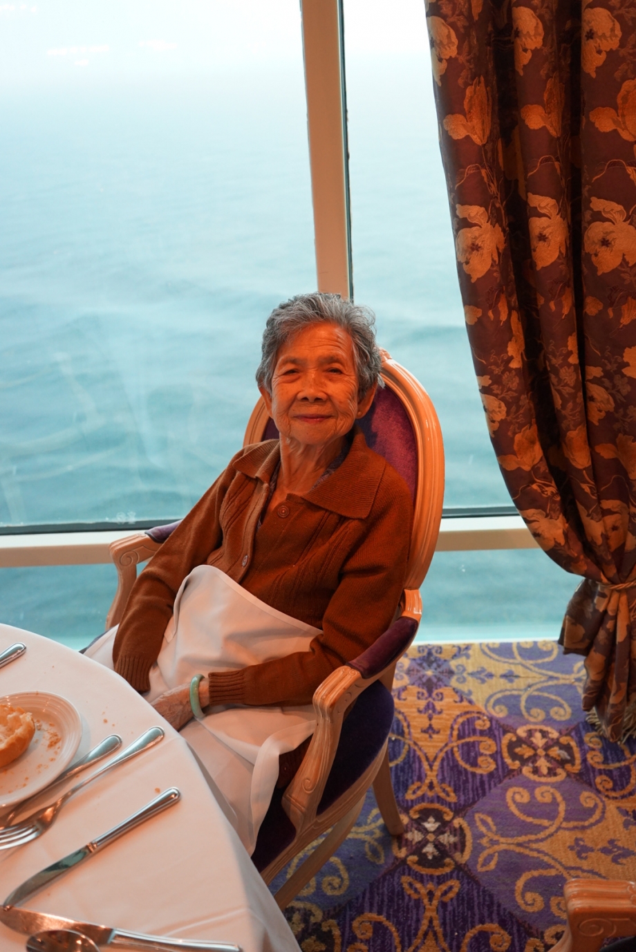 Grandma looking very pleased with the Asian fares and service on the ship.