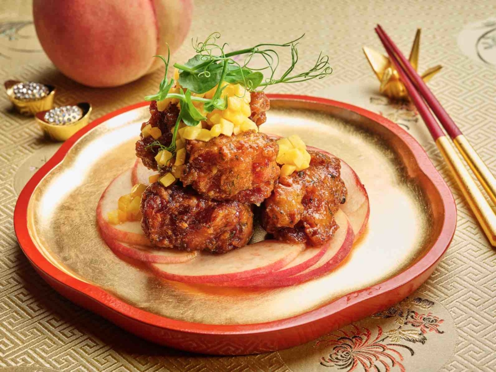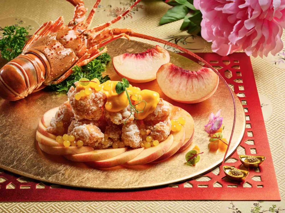 Imbibe the full splendour of the season and show your appreciation to your loved ones with a symphony of diverse flavours, starting with Boston Lobster & Caviar Yu Sheng 豪情壮志(鱼子酱 波士顿龙虾捞起) (Large: $188++, Small: $108++); Bird’s Nest Dumpling with Crab Roe Superior Soup 加官晋爵(官燕饺蟹粉汤) ($68++ per person); Braised 12-Head Xu Rong Abalone with Foie Gras & Seasonal Greens 延年益寿(12 头许榕溏心鲍鱼伴鹅肝) ($328nett per piece); Cherry Tomato Marinated with Peach Puree 蜜桃鲜茄 ($16++ per portion); Crispy Pork Trotter with Pineapple Sauce 正财就手(水蜜桃金沙元蹄) ($58++/4 persons); Sautéed Prawn with Szechuan Chinese White Wine Sauce 扭轉乾坤(酒酿干烧虾球)(Small: $25++); Pork Ribs with White Peach Honey Sauce 鸿福满堂(水蜜桃排枝)($38++); Wok-fried Soya Cutlet with Hawthorn Sauce & Peach 洪福齐天(蜜桃山楂豆砖)($28++ per portion), and more.