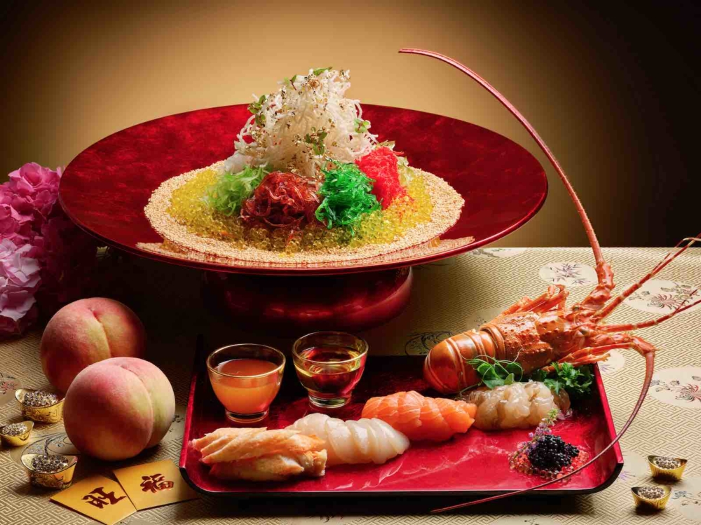 Enchant your loved ones with a symphony of Cantonese favourites as well as novel creations incorporating unique twists. Highlights include the luxuriant Lobster, Scallop, Salmon, Alaskan Crab, Caviar and Crispy Fish Skin Yu Sheng with Passionfruit Pearls & Crispy Vermicelli dotted with gold flakes 万里鹏程(至尊鱼生捞起) (Large: $268++); Boston Lobster, Caviar and Crispy Fish Skin Yu Sheng 豪情壮志(鱼子酱波士顿龙虾捞起) (Large: $188++, Small: $108++) and Mini Abalone and Crispy Fish Skin Yu Sheng 喜笑颜开(千孙鲍鱼捞起) (Large: $158++, Small: $88++).