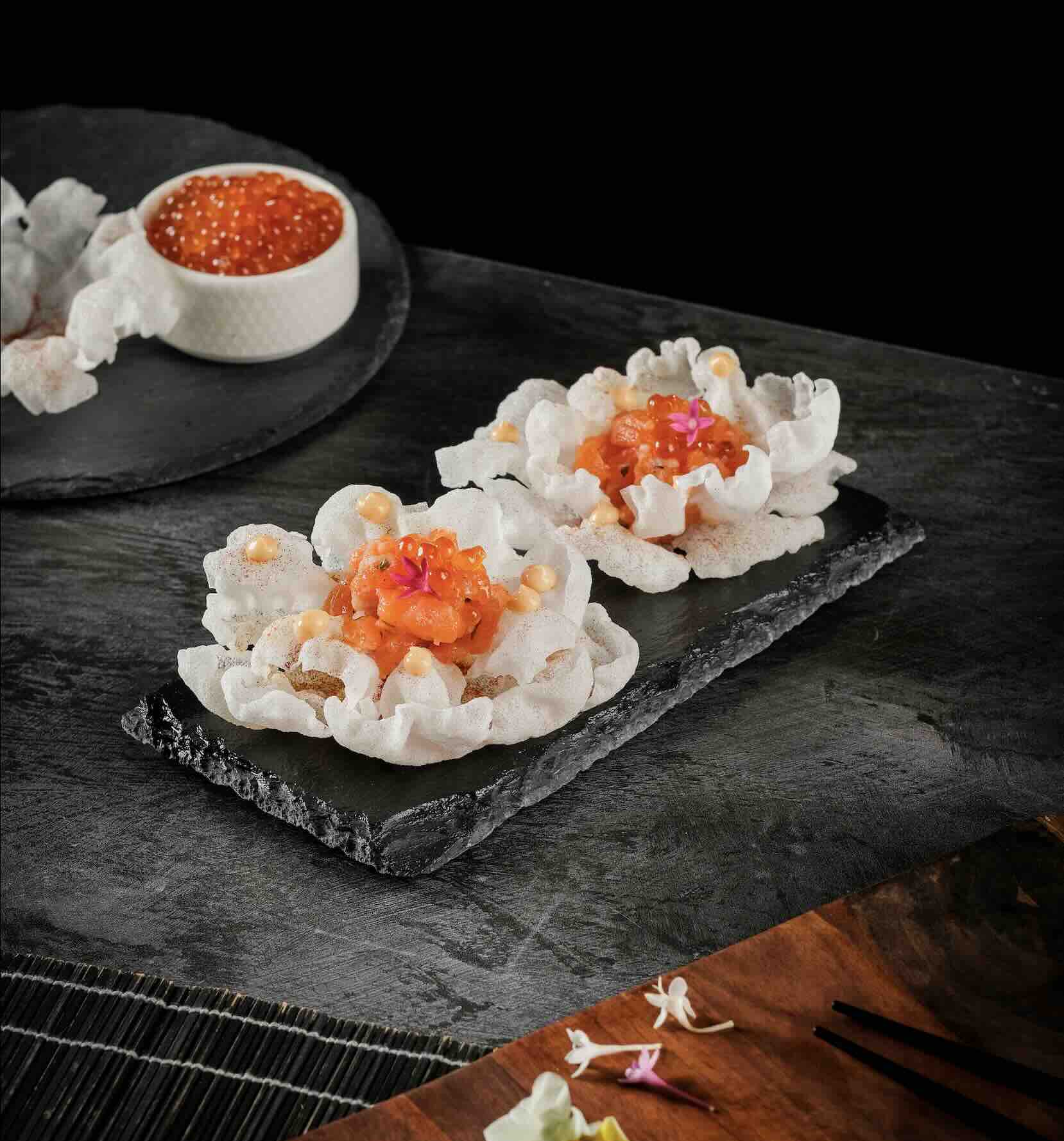 The Mirabilis Bar’s signature drinks, like the Chamomile Paloma and Hibiscus & Rose Sour, bring a floral twist to classic cocktails. Pair these refreshing concoctions with bar bites such as Mirabilis Blossoms (Confit Fjord Trout Tartare on Crispy Rice Paper) or the delicate Watermelon Sashimi for a delightful pre-dinner treat.