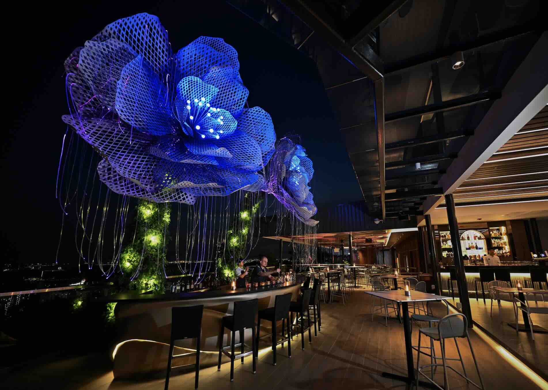 Named after the beautiful Four O’Clock flower, The Mirabilis Bar opens its doors each afternoon, just as the blooms come to life. This unique bar offers floral-themed cocktails, crafted by acclaimed bartender Anton Gornev, perfect for sipping under the golden hues of the sunset. With a five-metre tall flower-inspired centrepiece and luminescent vines swaying in the breeze, this is a bar experience unlike any other.