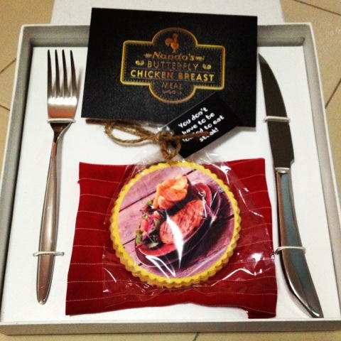 Nandos always have a way of surprising people and making them feel special. I received a lovely parcel containing a pair of fork and knife, a ‘Butterfly Chicken Breast’ branded cookie with a note telling me that I do not need to be loaded to eat steak and an invitation to any Nandos restaurants for The All-New Butterfly Chicken Breast Meal!