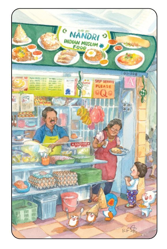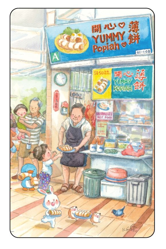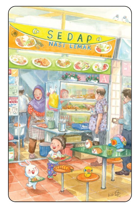 Ah Guo’s Hawker series depicts a child visiting different food stalls in a hawker centre, each selling ethnic dishes that are familiar to and well-loved by many Singaporeans, including popiah, prata and nasi lemak. The series highlights the nation’s strength in diversity, and was launched in 2019 — a year before Singapore’s hawker culture’s inscription on the UNESCO Representative List of the Intangible Cultural Heritage of Humanity.