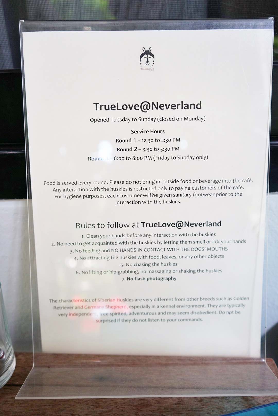 Please make sure you arrive 15 minutes before the interaction time slots (service hours) to avoid disappointment as seats are limited. You can only get upfront and personal with the huskies during these service hours. As with all pets cafes, there are strict rules to follow during your fun time with these adorable huskies.