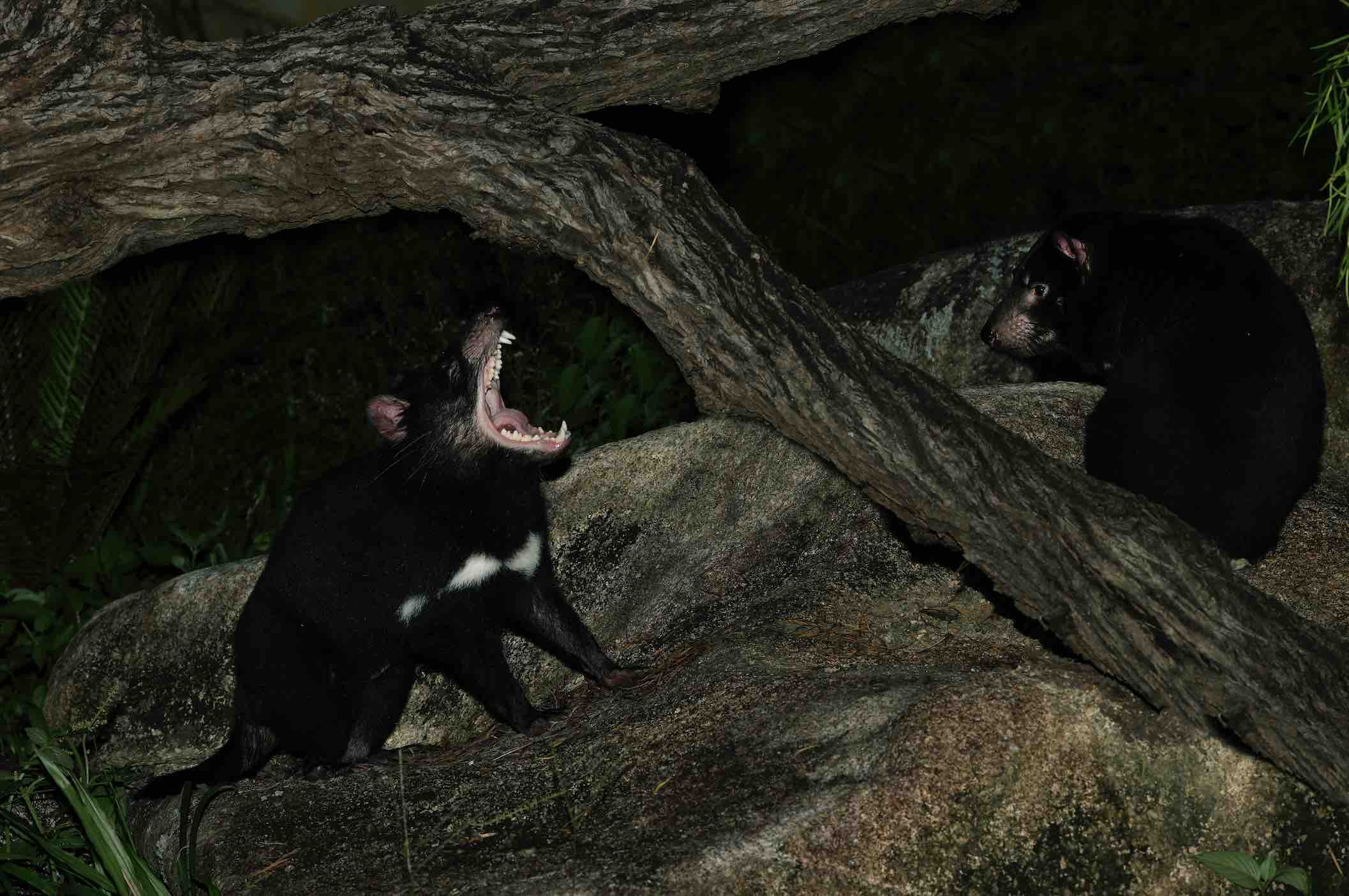 The outdoor exhibits feature rockwork, water features and Australian trees such as Eucalyptus and shrubs like the Red Flowered Silky Oak to simulate the Devils’ wild dry shrubland habitat. The four individuals will be housed in pairs – Crumpet with Snickers, and Jesse with Panini, with each pair having access to their respective indoor and outdoor spaces.