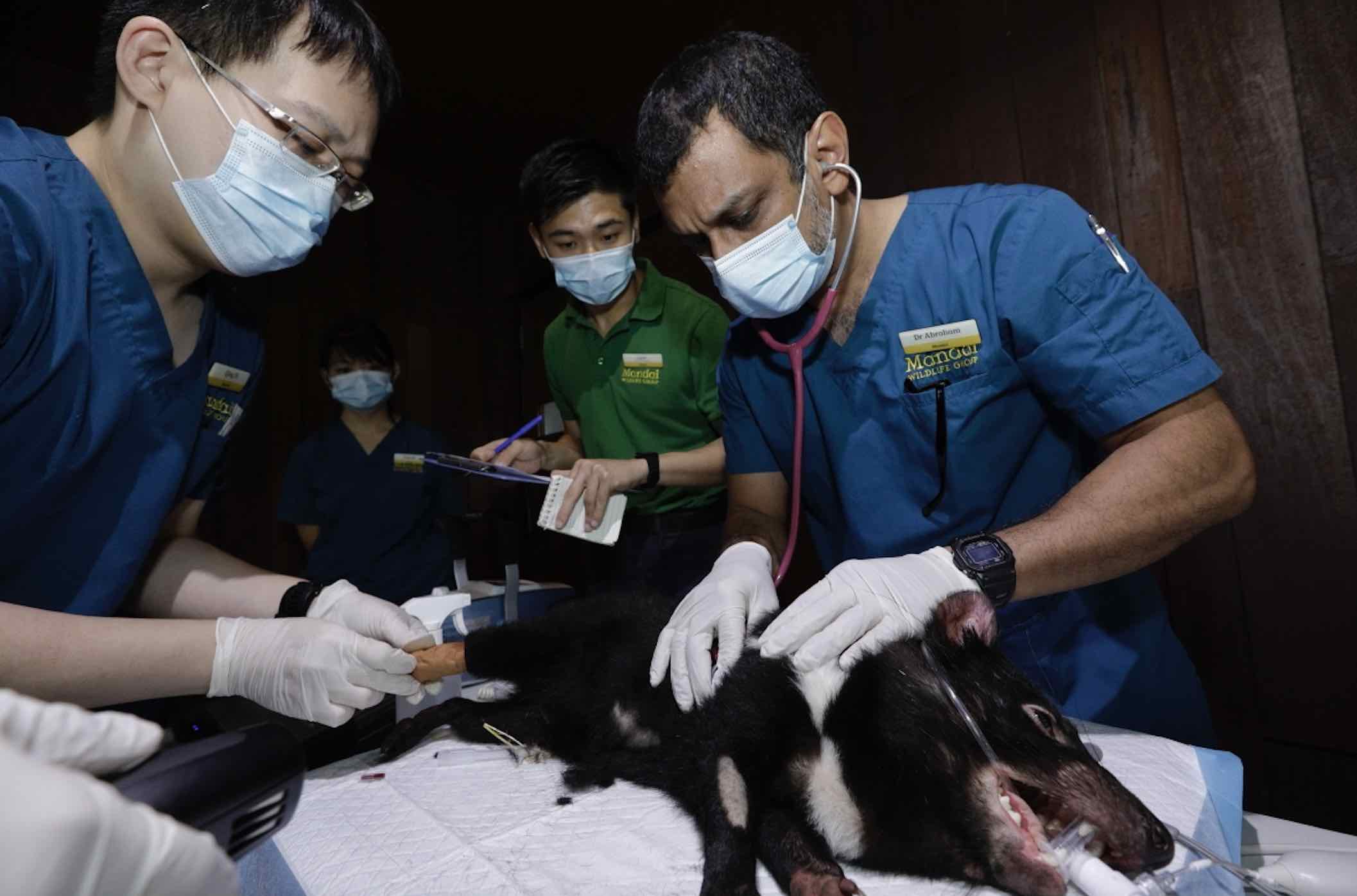Planning and discussions for Night Safari to receive the animals started as early as 2018, with the Tasmanian Devils’ projected arrival in Singapore in 2020. Night Safari’s Animal Care team, including Assistant Curator Razak Jaffar, travelled to Tasmania in 2019 to undergo training with the animal care teams in the STDP and Trowunna Wildlife Sanctuary. Razak and team worked closely with the Australian partners to learn the biology of the Tasmanian Devils, how to safely manage and restrain them for medical procedures, and the right diet and ways to feed the carnivorous marsupials.