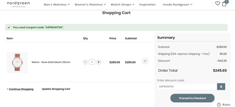 Wait no more, visit Nordgreen & start shopping today! You will be thrilled to know that all AspirantSG Readers get to enjoy an exclusive 15% discount with discount code ASPIRANTSG. You just need to key in the code at the ‘Shopping Cart’ before you proceed to ‘Check Out’. Have fun choosing your very first Nordgreen watch!