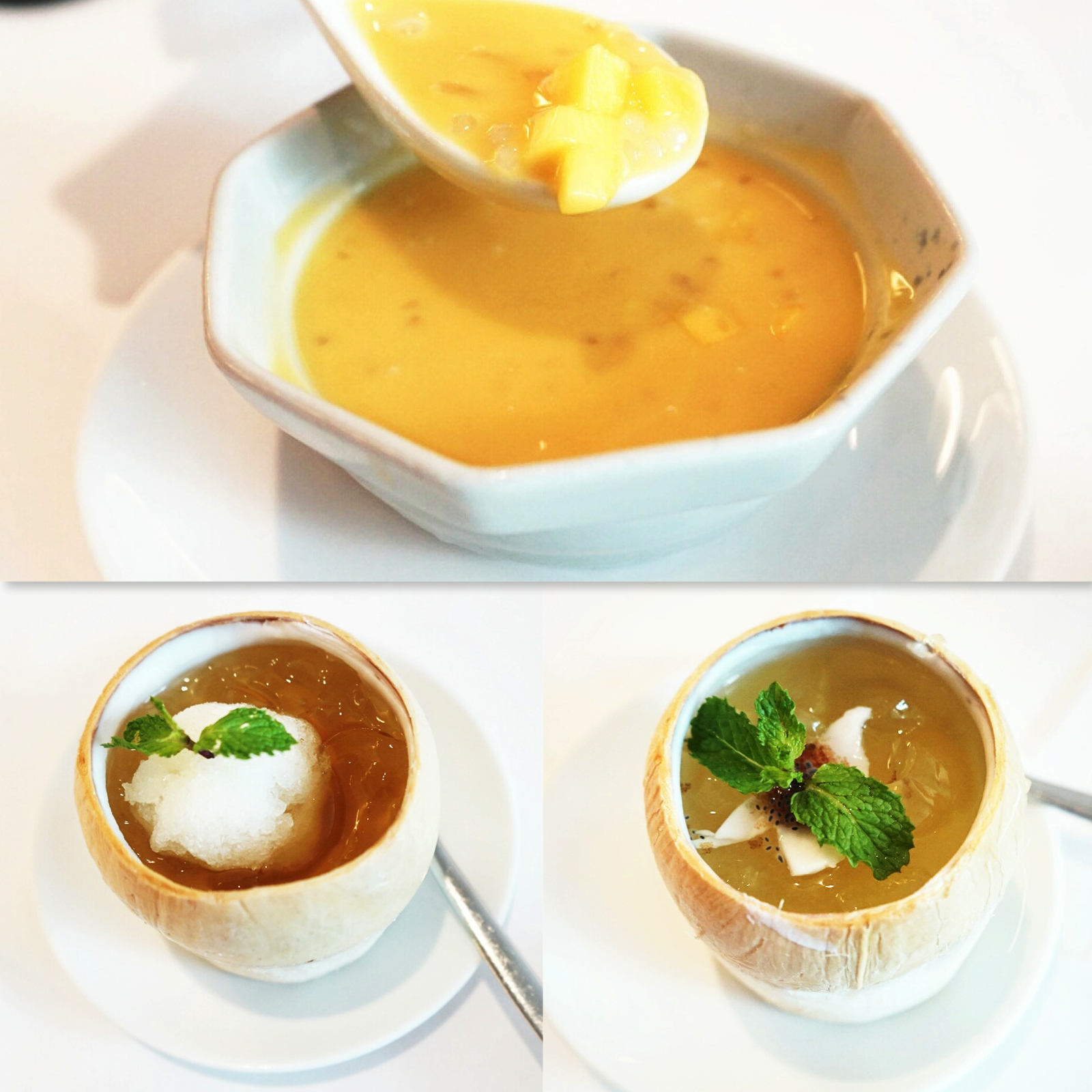 As much as we would love to try everything on the menu, there is only so much that we can stomach. But there is always room for a sweet ending. We had Chilled Mango Cream With Sago and Pamelo ($4.80), Chilled Lemon Grass Jelly In Young Coconut ($6.80) and Chilled Coconut Jelly served in Young Coconut ($6.80).