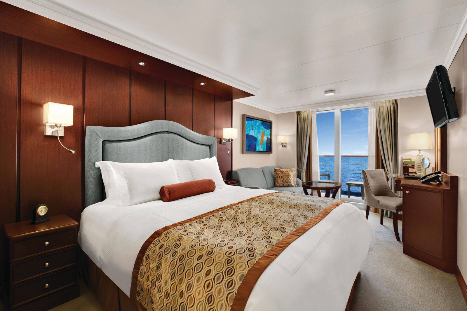Both ships offer four open-seating restaurants, world-class fitness centres and spas, lounges and bars, a casino, 342 lavish suites and luxurious staterooms. And with just 684 guests, the 400 professionally trained staff onboard ensures that all guests receive the utmost attention and care.