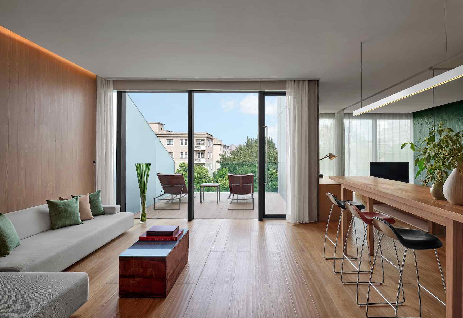 Imagined as a contemporary art gallery, The Opposite House was originally designed by acclaimed Japanese architect Kengo Kuma in 2008. Its now-iconic emerald green glass exterior reflects the hotel’s setting in Taikoo Li Sanlitun and inside, the airy atrium presents its signature rotating art exhibitions under monumental drapes that create a screen of light. The House’s new experience begins with Kengo Kuma’s “Origami” installation, which serves as the lobby’s new reception wall. Kengo applied Tyvek, a translucent synthetic textile resembling hand-made paper, to create a screen of light with organic texture and shades.
