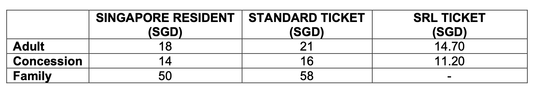 Ticket prices as follows: