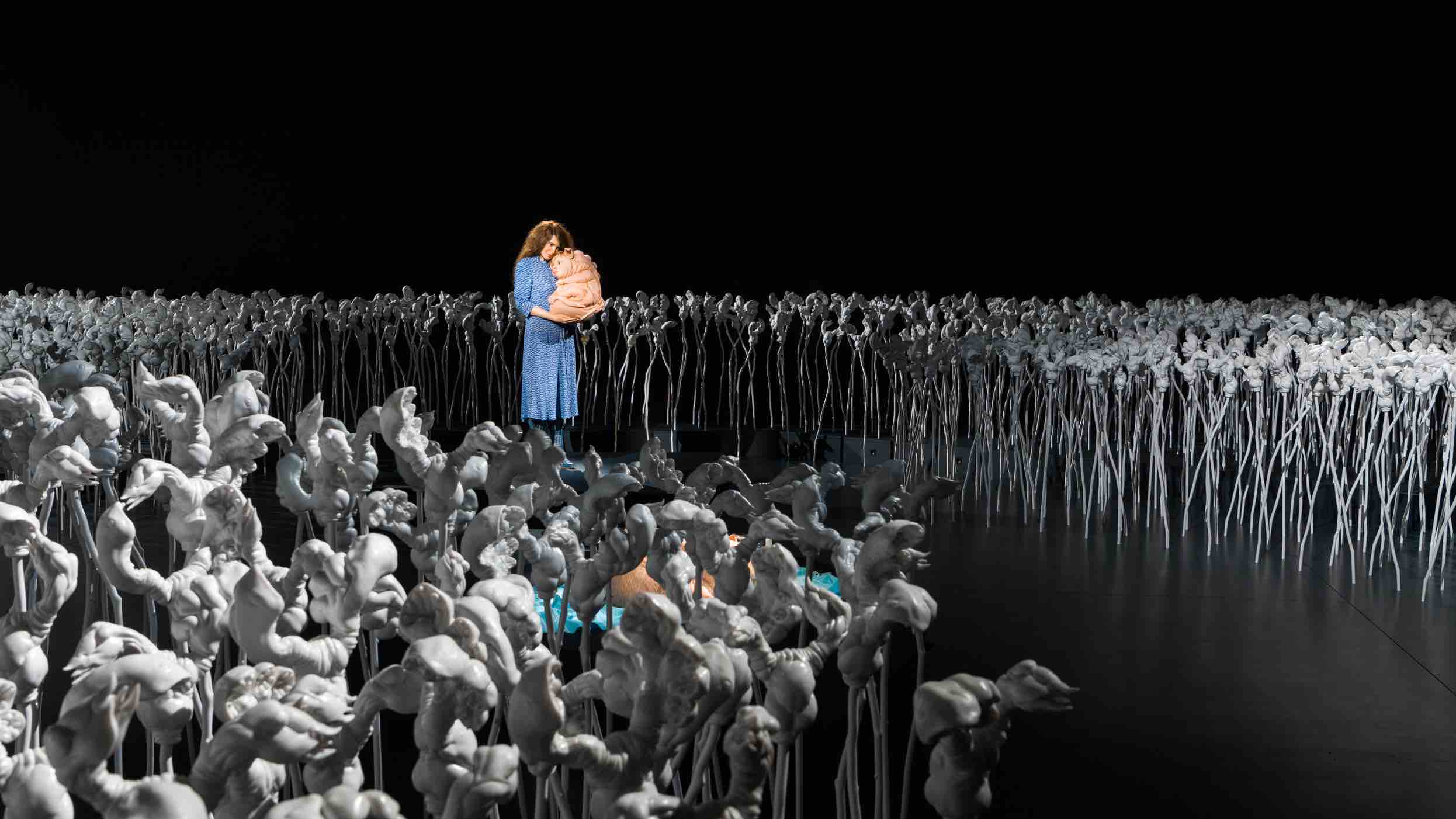 Her creatures reveal a strong sense of vulnerability and tenderness that evoke empathy, encouraging visitors to reconsider how they relate to others, as well as contemplate kinship and beauty through a different perspective when confronted with the unfamiliar.