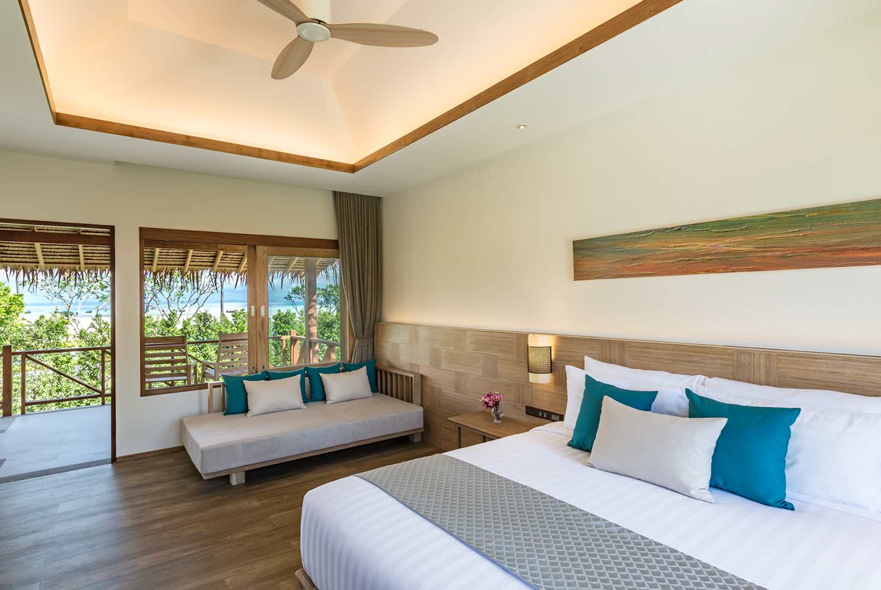 Accommodation comprises of 189 traditional Thai style bungalows and 12 exclusive private Hillside Pool Villas. Each villa has its own private pool where you can relax and view the magnificent scenery. Resort facilities include four restaurants, three bars, Internet café, spa, gift shop, recreation centre, 5-Star PADI dive centre, fitness room, 2 large swimming pools, tennis courts, and transfers by luxury Resort boats.