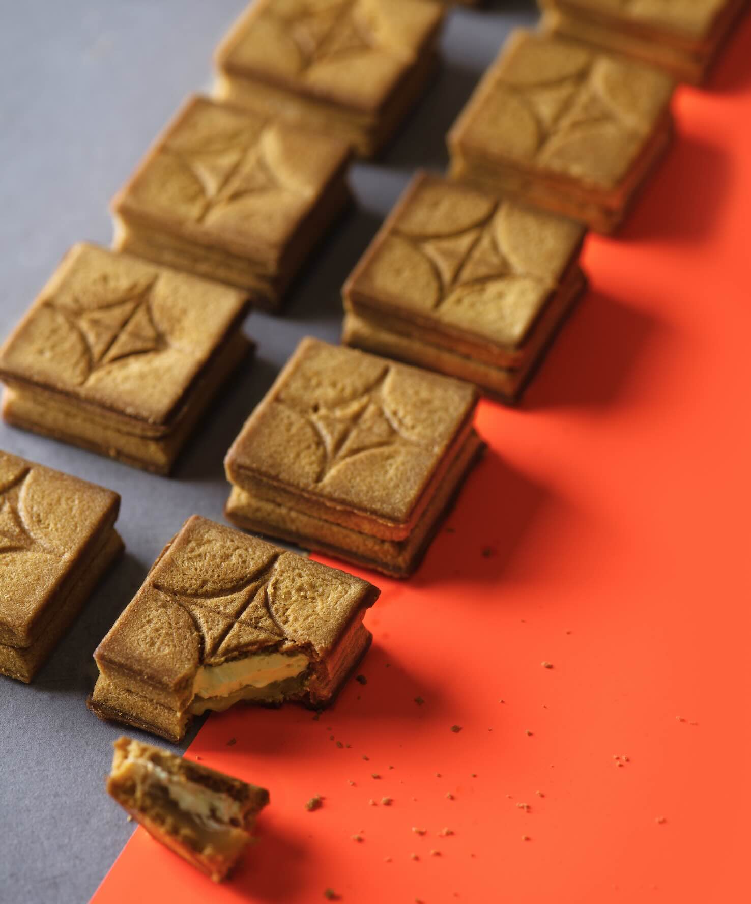 This harmonious blend creates a sensory experience that elevates the simple joy of biting into a cookie. The cookies are ingeniously shaped like a box, preventing the soft filling from oozing out, and intricate striations on the inside make them easy to break and savor. It’s a masterpiece of confectionery design designed for your maximum enjoyment.