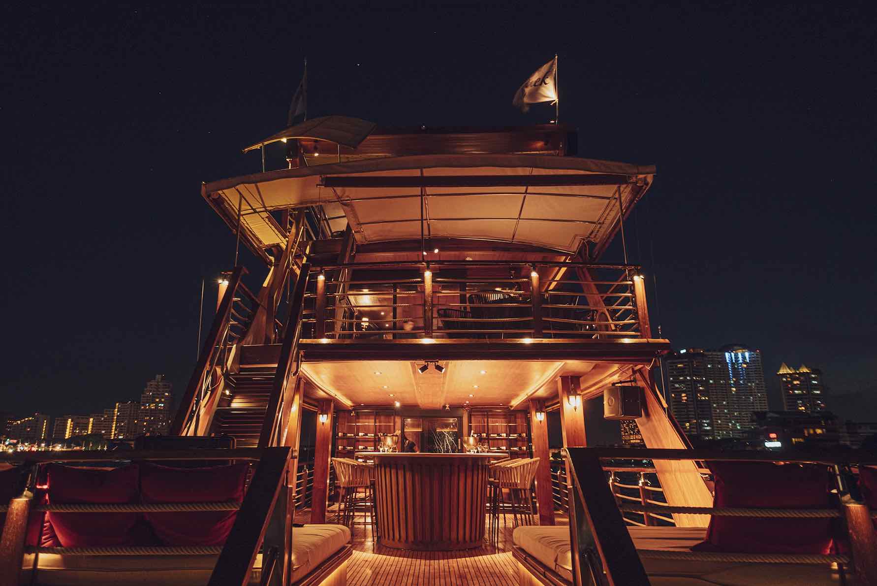 Pruek Cruise Bangkok promises to offer you and your loved ones an exclusive and entirely bespoke setting for celebrations, soirées and unforgettable get-togethers of every kind on the gorgeous Chao Praya River. Custom-built to maximize comfort, ease and adaptability, their luxury yacht-style cruise lets you experience Bangkok’s glittering cityscape from a three-storey vessel complete with indoor and al fresco dining areas, Piper-Heidsieck Champagne bar and rooftop garden.