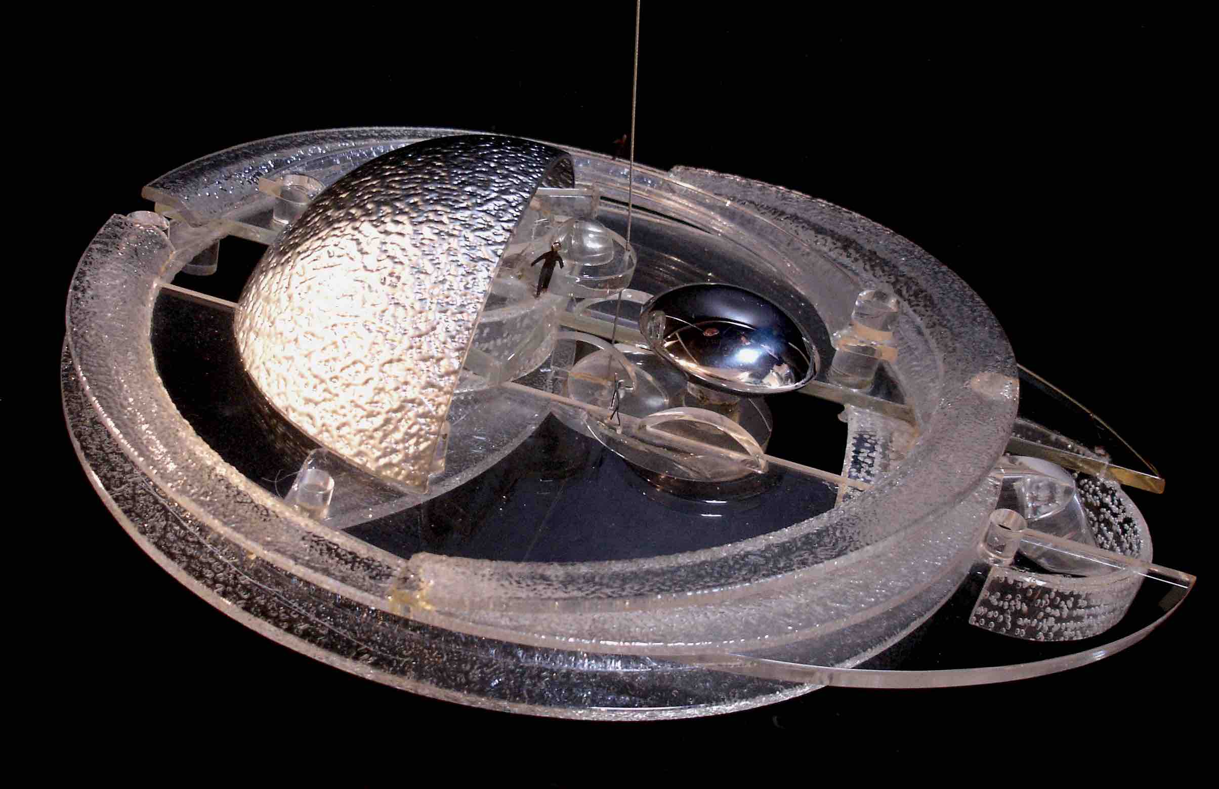 Between 1946 and 1972, Argentinian artist and poet Gyula Kosice produced a number of sculptures and models that gave form to his vision of a habitat that defied the laws of gravity. In his Hydrospatial City, people would live by using electrolysis, separating hydrogen and oxygen to produce water and energy.