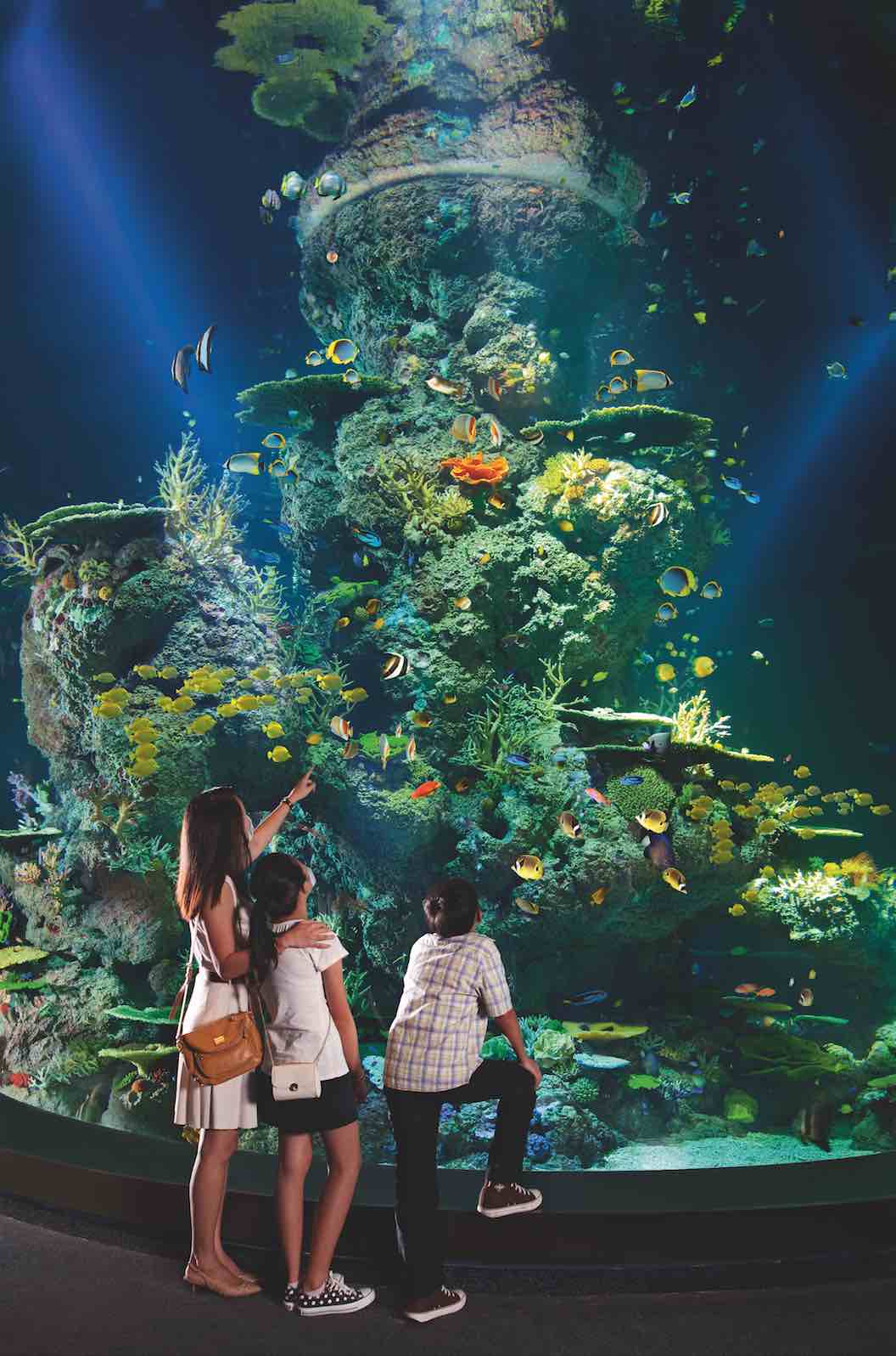 Home to more than 7,000 known species of marine animals, the tropical islands around Hawaii are known for their lush and thriving coral reef ecosystem, which many marine species rely on for their food, shelter and nursery grounds. At S.E.A. Aquarium, you will come face-to-face with, and uncover, fun facts about some of these inhabitants in the ecosystem, such as the raccoon butterflyfish, yellow tang, slingjaw wrasse and the aquarium’s iconic manta rays, all while spotting special tiki totem icons on the Tropical Trail.
