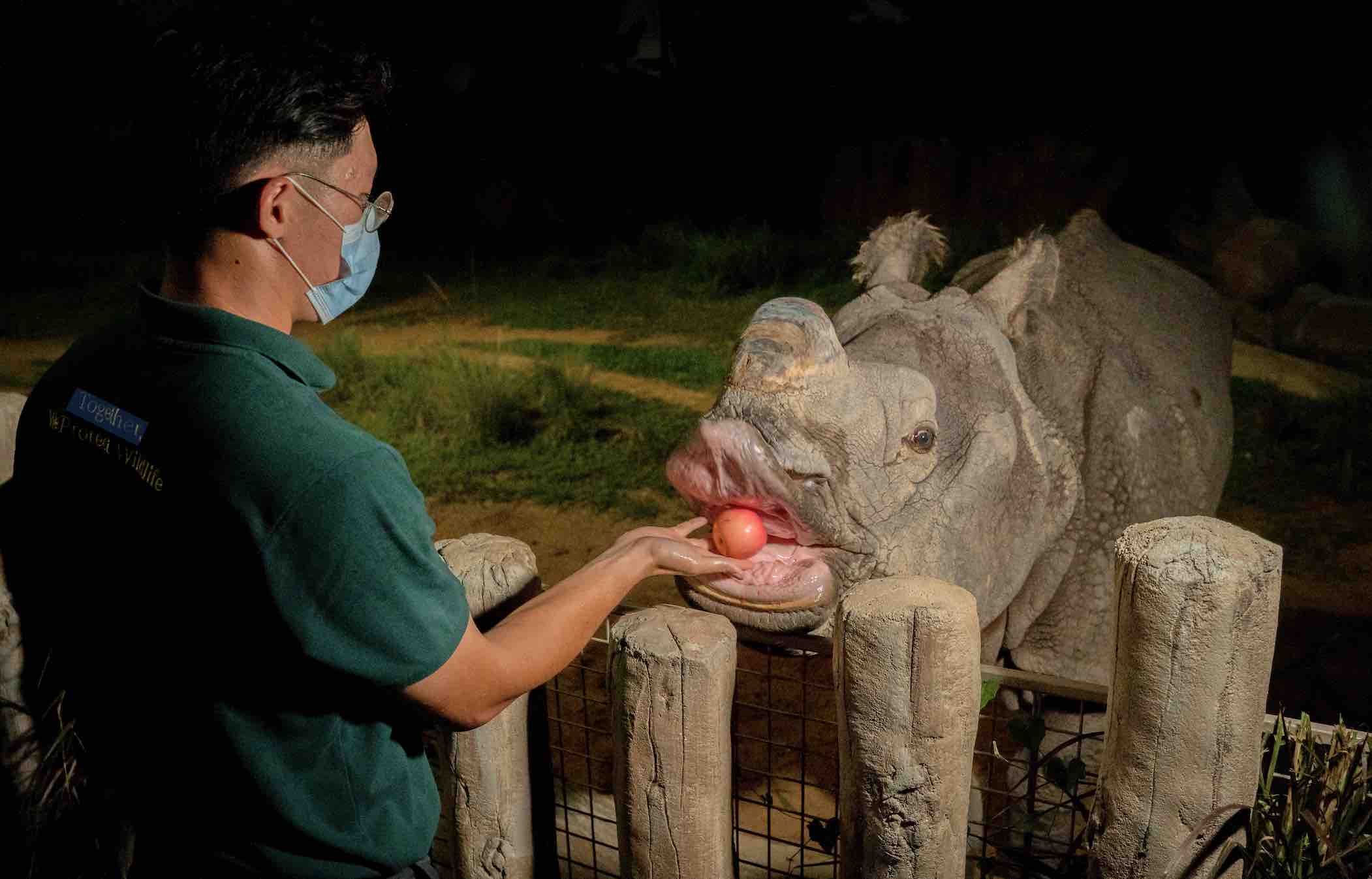 Indian rhinos are listed as vulnerable under the IUCN Red List of Threatened Species, with an estimated population of about 3,700 mature individuals left in the wild in India and Nepal. Through meaningful interactions such as feeding, Night Safari hopes guests will come away with a sense of appreciation for the rhino species and be inspired to care for our planet and support conservation efforts that help protect nature and wildlife like these majestic animals.