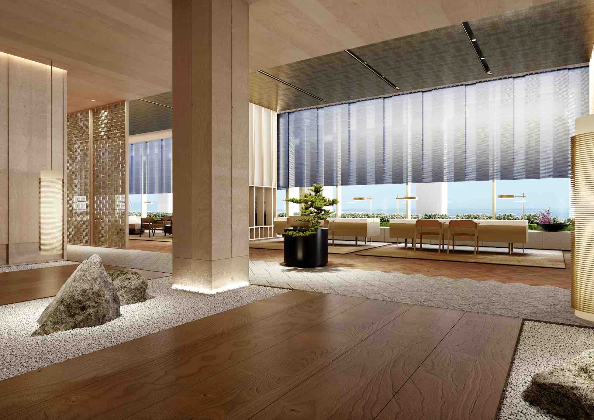 In addition to a wedding chapel and banquet rooms, the hotel facilities will include a Japanese restaurant serving teppanyaki, sushi, and kaiseki multicourse menus; an all-day dining venue for Western-style cuisine; a lobby lounge and bar for cocktails and light refreshments; and a café for afternoon tea and takeout options. In atmosphere and offerings, these dining and relaxation venues will complement Fukuoka’s international status as a lively food capital.