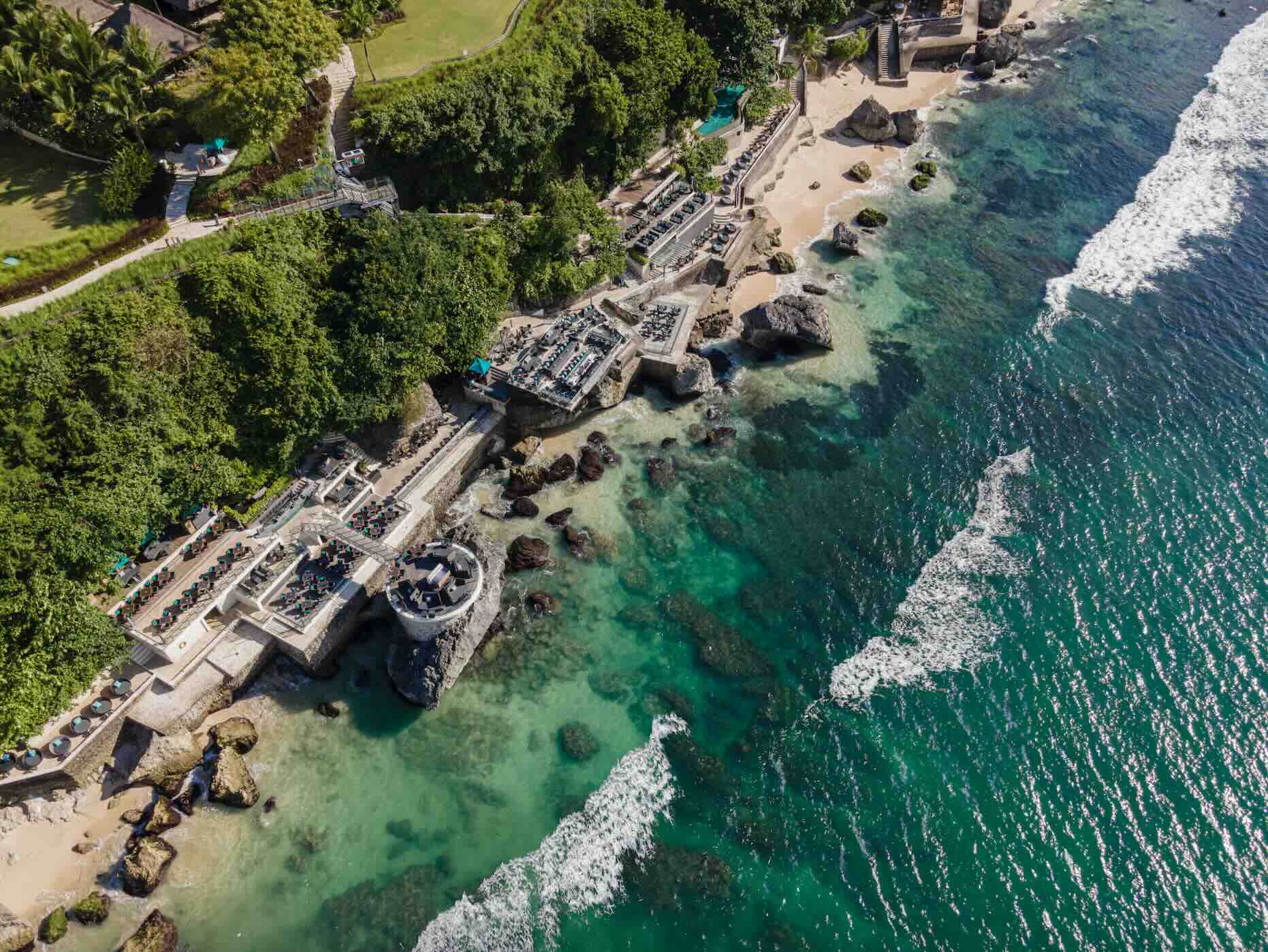 Elegantly carved into low-lying rock formations below the stunning limestone cliffs of Jimbaran Bay, Rock Bar emerged in 2009 as one of Bali’s pioneering cliff-side establishments. Its journey to prominence has been recognized by numerous accolades, including CNN naming it one of the world’s best hotel bars in 2020, and Travel+Leisure declaring it one of the world’s coolest hotel bars. Today, Rock Bar has expanded its capacity to accommodate up to 880 guests simultaneously.