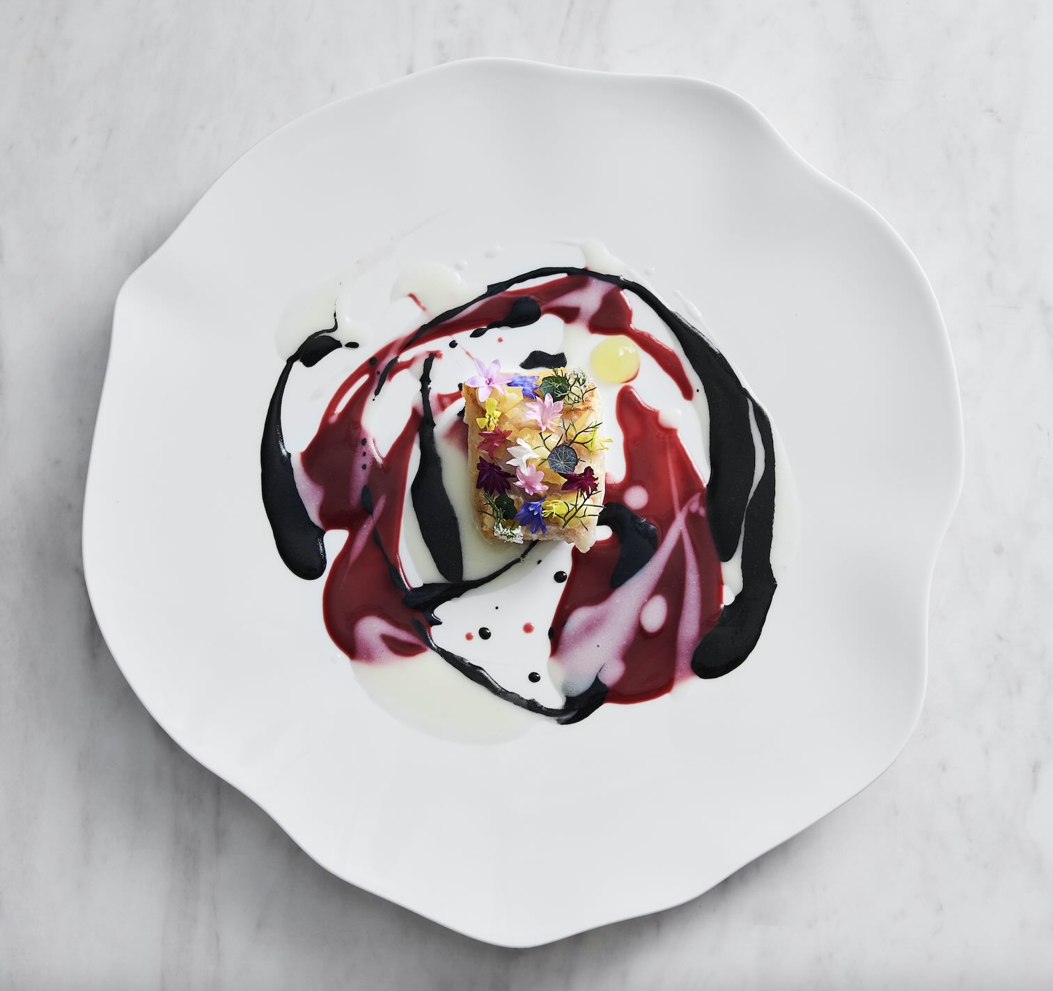 Corner’s Flowers, features the unique and rare Japanese Ginpo, which Chef Priyam has paired with smoked almond and painted on with a beetroot extraction and yuzu calamansi – an example of his lifelong passion for art – the colours and strokes on the plate inspired by the works of Jackson Pollock and Damien Hirst, two of his favourite artists.