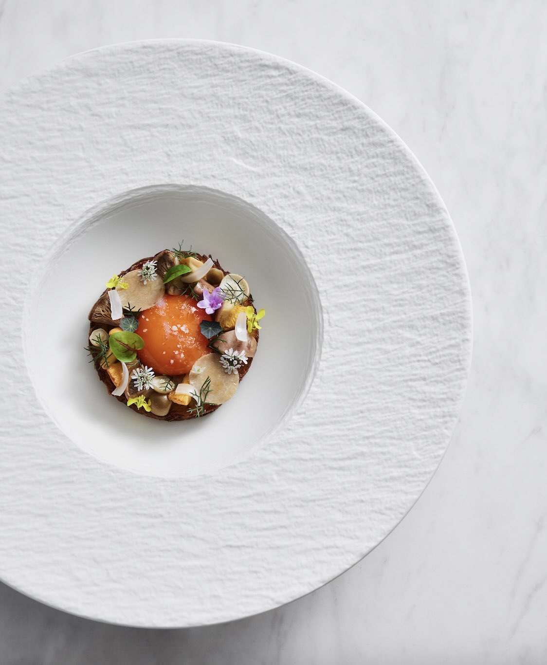 Chef Priyam pays tribute to Professor Edred John Henry Corner, E.J.H. Corner House’s former resident, and the Botanic Gardens’ former Assistant Director. The creation, Fungi & Corner, as well as Corner’s Flowers, celebrates Mr Corner’s fascination with mushrooms and his love for orchids through a well- balanced combination of confit egg yolk, seasonal mushrooms, potato rosti, mushroom velouté and truffles.