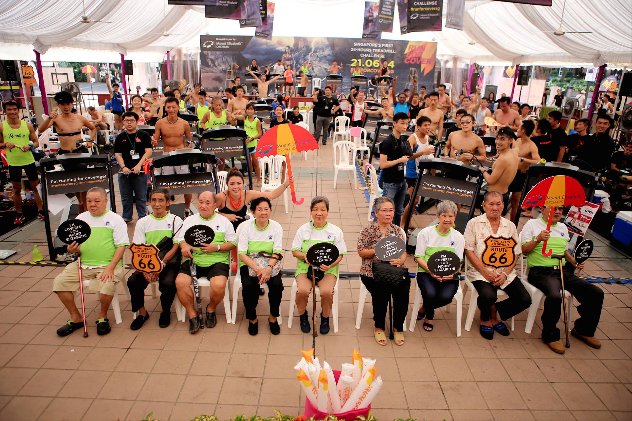 That was the simple premise of the event that I recently covered. It was an event organized by Mount Elizabeth to promote the use of personal insurance for hospital visitations by the public. It would culminate in an event involving hundreds of runners from all over the island running from 2pm to 2pm ,on treadmills, with an added bonus being that for every 30km they clocked, the hospital would be giving out free cataract surgery for the needy elderly.