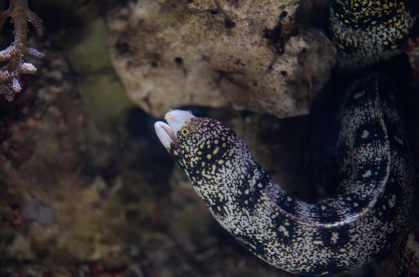 Our marine animals look a lot like Christmas too! Have you seen the scarlet skunk cleaner shrimp with its distinctive pair of bright red stripes that flank one white stripe running down its back? Imagine snowfall by gazing at the snowflake moray eel which resembles powder snow, albeit in the water; and the pinecone fish, so-named after the woody conifer fruit featured on Christmas trees.