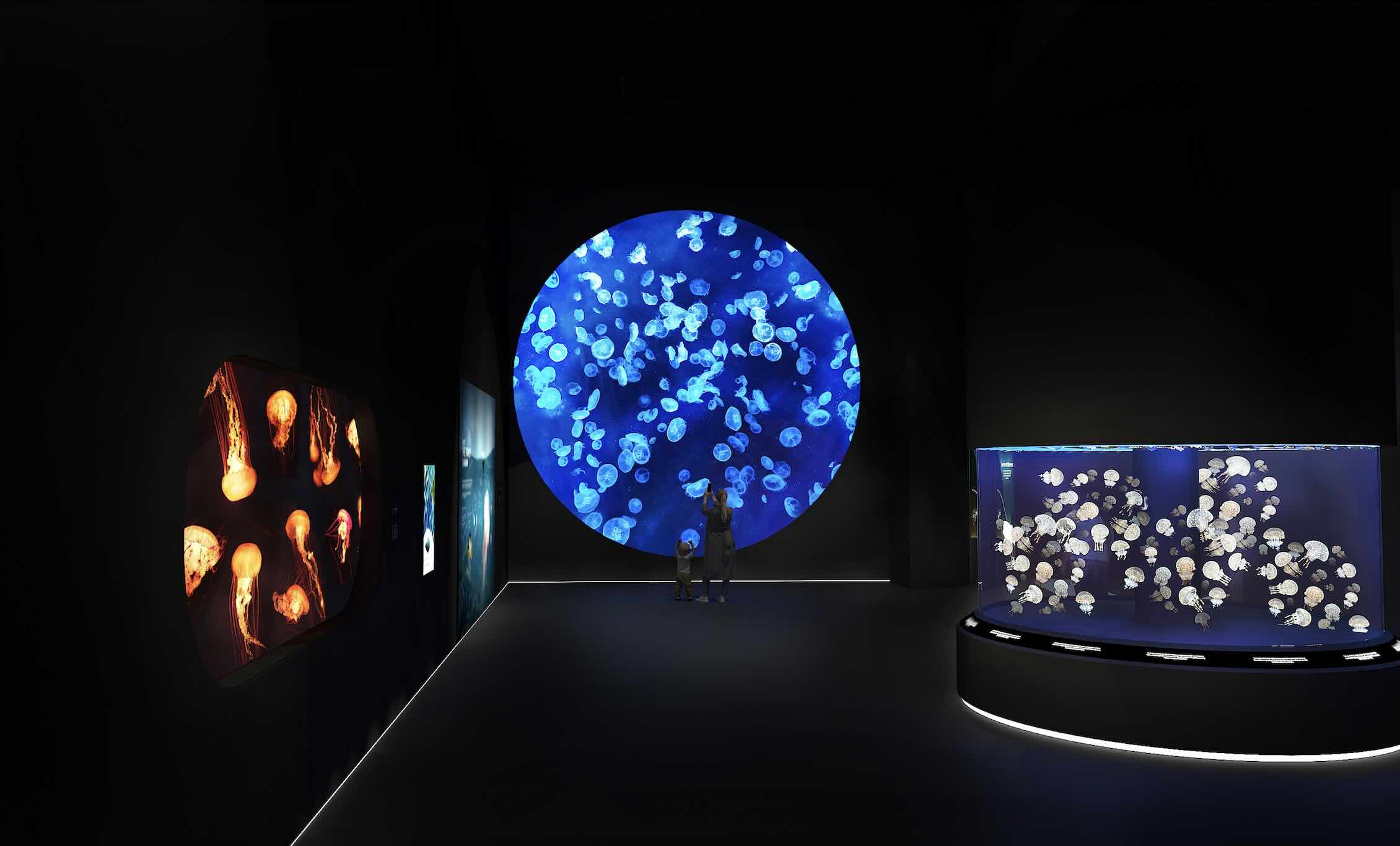 As you begin your journey, the tides of time carry you through Ancient Waters, where life-sized animatronics and living fossils retell the story of early marine evolution. Further in, Ocean Wonders stuns with one of the world’s largest kreisel tanks, filled with thousands of hypnotic moon jellies.