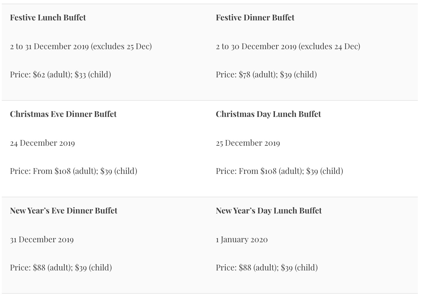 Sheraton Towers Singapore Christmas 2019 – The Dining Room
