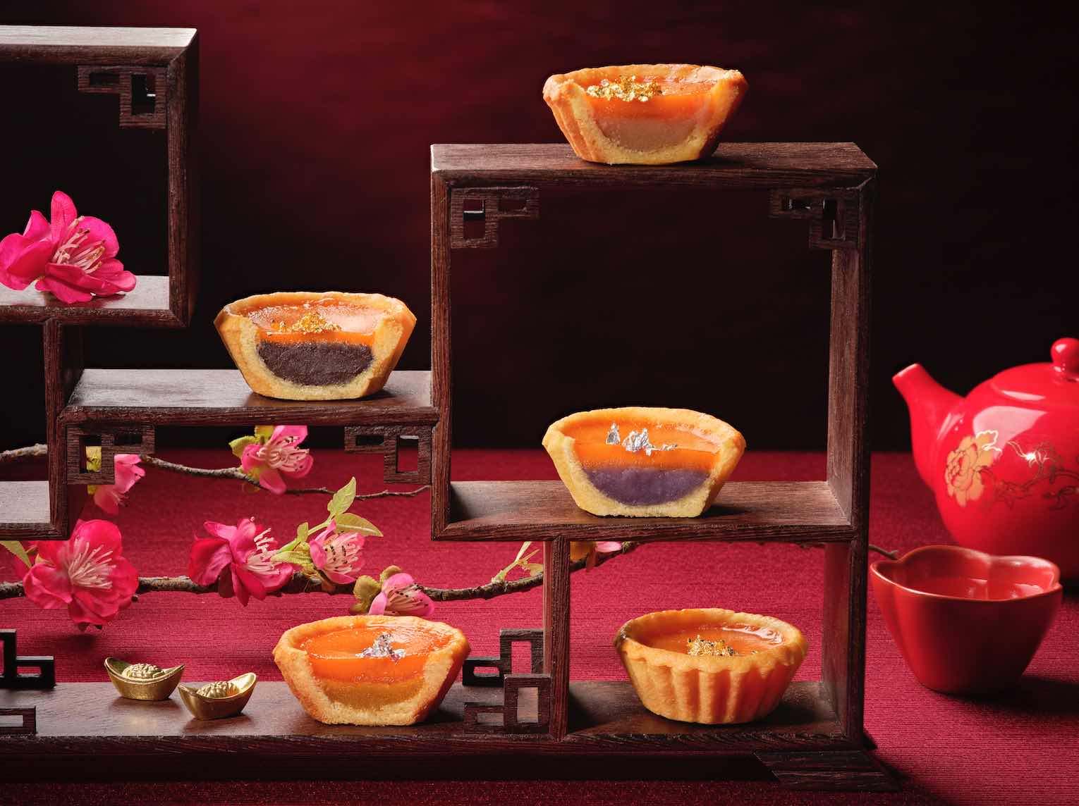 Reunions with family and friends are made sweeter with Singapore Marriott Tang Plaza Hotel tempting takeaway treats such as Golden Nian Gao Tarts with Purple Sweet Potato (紫薯年糕挞) ($32nett/ 8 pieces) or Japanese Red Bean (日本红豆年糕挞) ($28nett/ 8 pieces). Don’t forget to choose from the all-time Lunar New Year favourites such as Koi Fish Fresh Mango Pudding 鲤跃龙 门(香芒锦鲤布丁) ($52nett/6 persons); Golden Nian Gao Tarts with Cempedak 金玉满堂 (金蜜年糕挞 ($32nett/ 8 pieces); Golden Nian Gao Tarts with Yam 恭喜发财(椰汁芋香年糕挞) ($28nett/ 8 pieces), and many more.