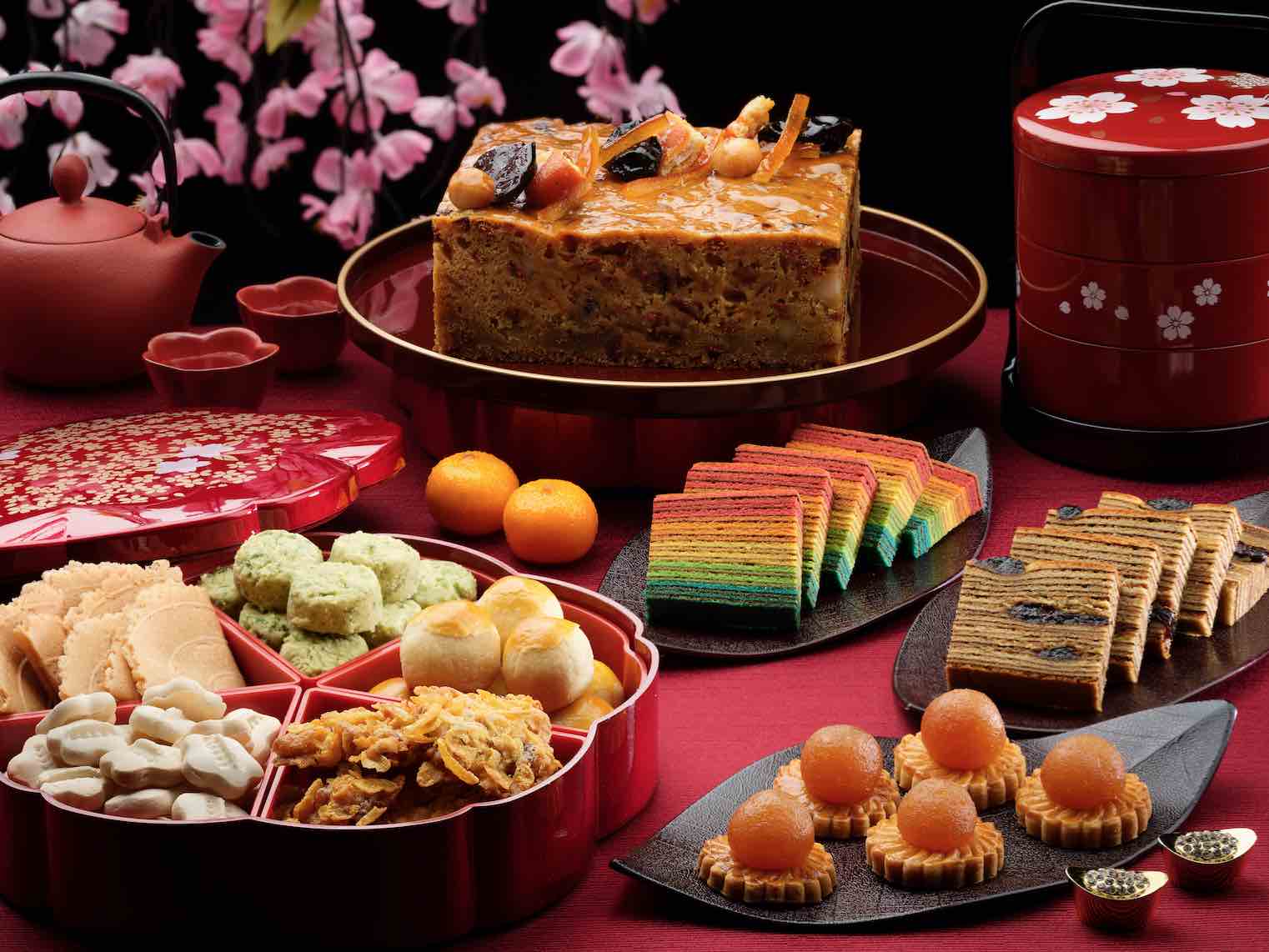 Alternatively, send your well-wishes of good luck and fortune to family, friends and business partners with a smorgasbord of delightful treats and festive favourites. Highlights comprise of Signature Pineapple Tarts ($44nett); Bak-Kwah Cornflake Cookies ($44nett); Crispy Marshmallow Chocolate Cookies ($40nett); Crispy Rice Cornflake Slices ($40nett); Golden Nian Gao Tarts with Purple Sweet Potato ($32nett), Japanese Red Bean ($28nett), Cempedak ($32nett) or Yam ($28nett); Eight Treasures Cake ($66nett), and more.