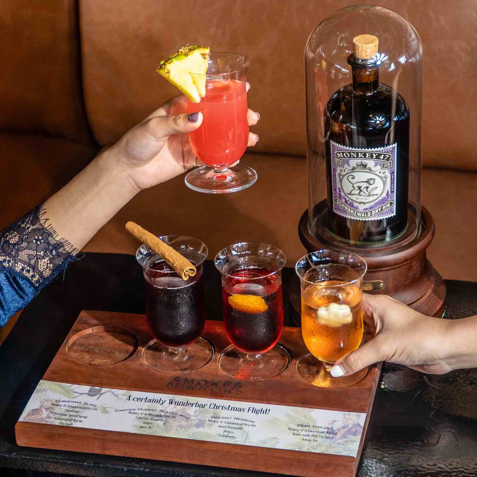 In collaboration with Monkey 47, the team behind Smoke & Mirrors has designed the Wunderbar Festive Cocktail Flight (S$68++) – a flight of four exclusive cocktails with Monkey 47 Schwarzwald Dry Gin – Mulled Wine, Holiday Negroni, Christmas Sling, and Pear Gimlet – that will make the Christmas bells ring. The flight will be available throughout the month starting from 12 December, inviting holiday revellers to enjoy these four exclusive cocktails atop the National Gallery Singapore to get into a festive mood.