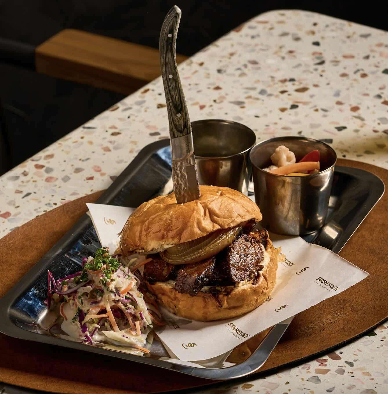 Whether you drop by for a relaxed lunch or indulge in a dramatic dinner under the stars, Smokestack’s menus promise unforgettable moments. The daytime offerings include gourmet burgers, sandwiches, salads, and snacks, while dinner turns into a bold display of fire-kissed brilliance.