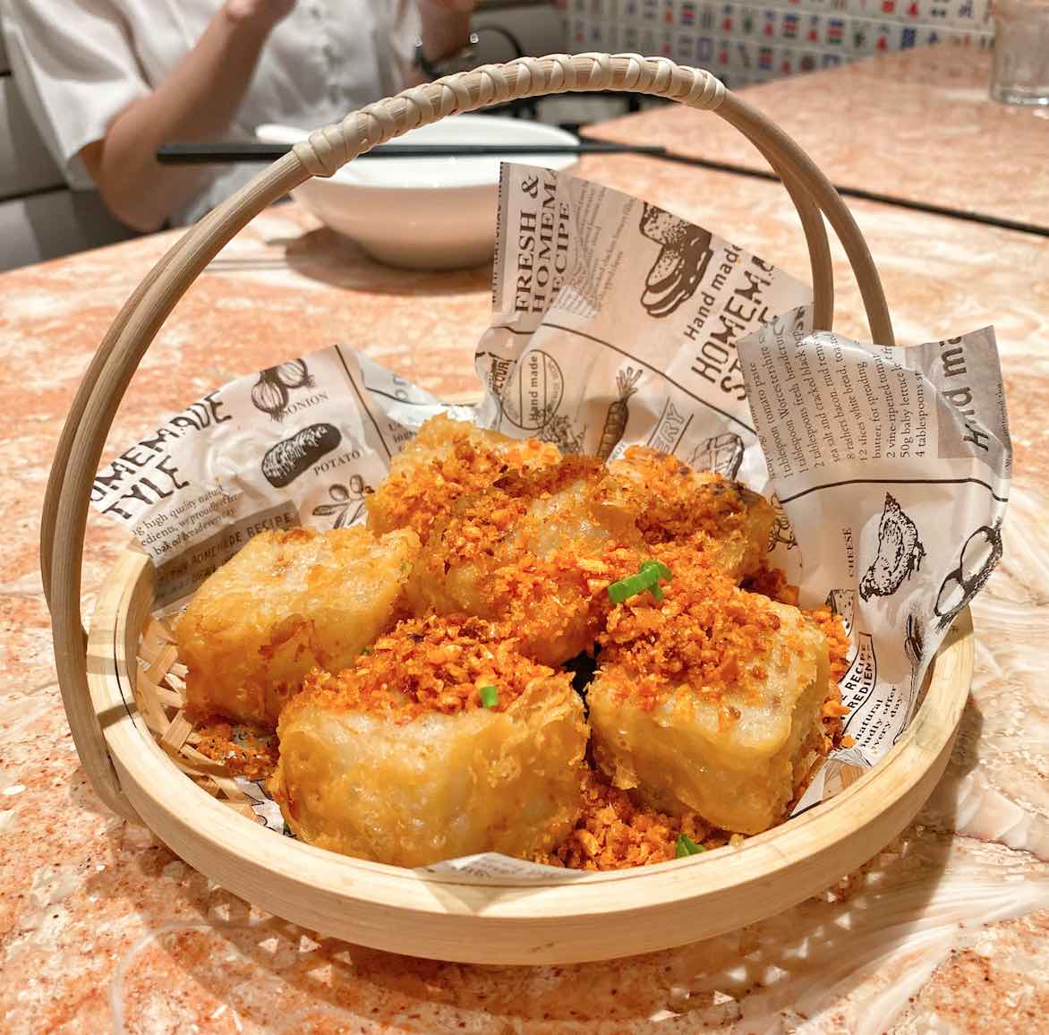 We ordered these Steamed Rose Floret Buns (S$1.80) because they look so pretty in many Instagram shots. The actual dish served, however, did not look as great on closed up. My friends were not impressed with the taste but I really liked the strong scent of rose from the pedals that they encased within the buns. That for me was something unique that you may want to experience for yourself.
