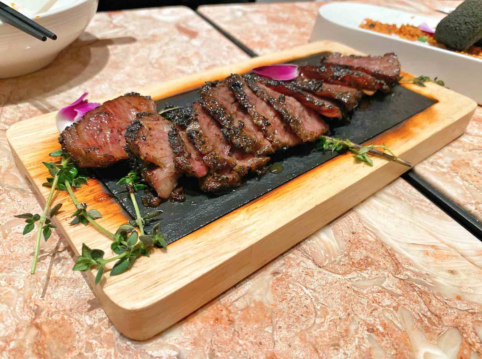 The star of the show would have to be the Sweet and Sour Pork on Ice (S$24.80). The dish presentation when it was served to your table already made it a winner. Served on ice along with an assortment of fruits, water is poured through the ice to activate the dry ice underneath hence creating the fog effect. The presence of ice made the outer layer of the pork cold while the interiors still remained warm hence giving you another dimension of texture. The best part is – the pork is well-marinated and we adore the fatty texture. This is one dish you must tuck in immediately.