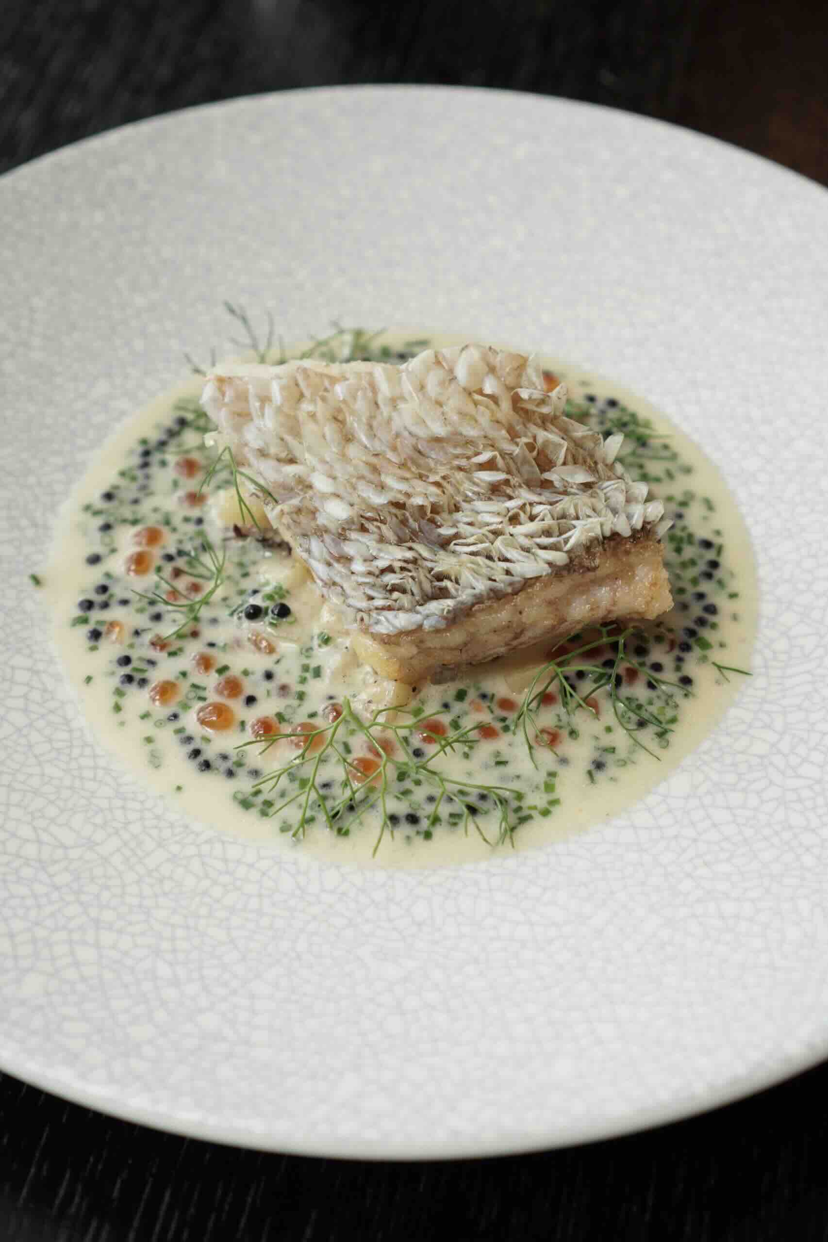 This is followed by a cold starter of Mosaic Duck Foie Gras, a velvety creation that combines shredded duck, with airy brioche and crunchy pistachios for a refreshing twist. The hot starter comes next, featuring Crispy Scale Snapper, served with a rich caviar beurre blanc, golden potatoes, and an earthy morel ragu.