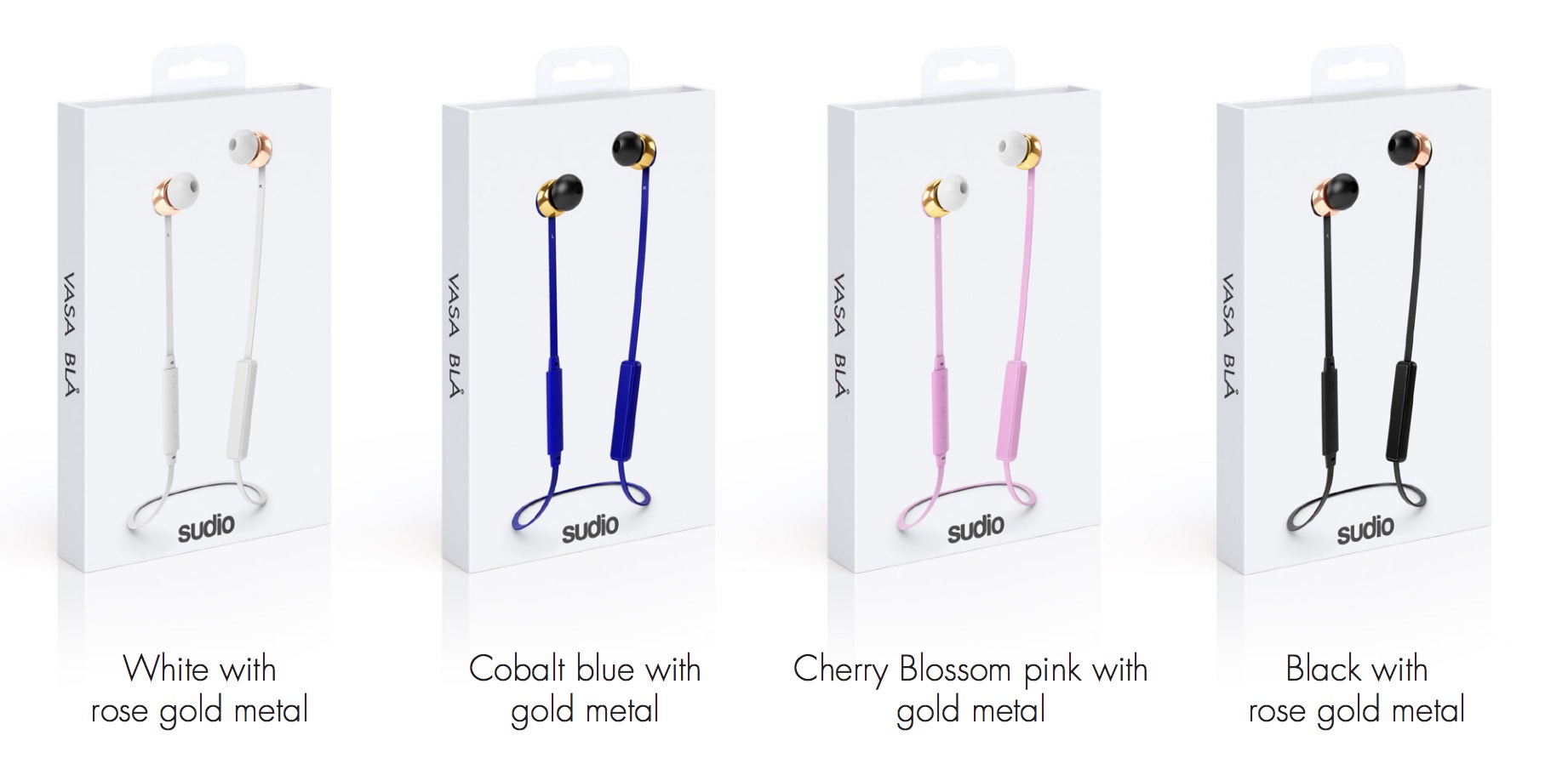 Handcrafted in small batches, each Wireless Vasa Blå earphones comes in 4 pretty colours