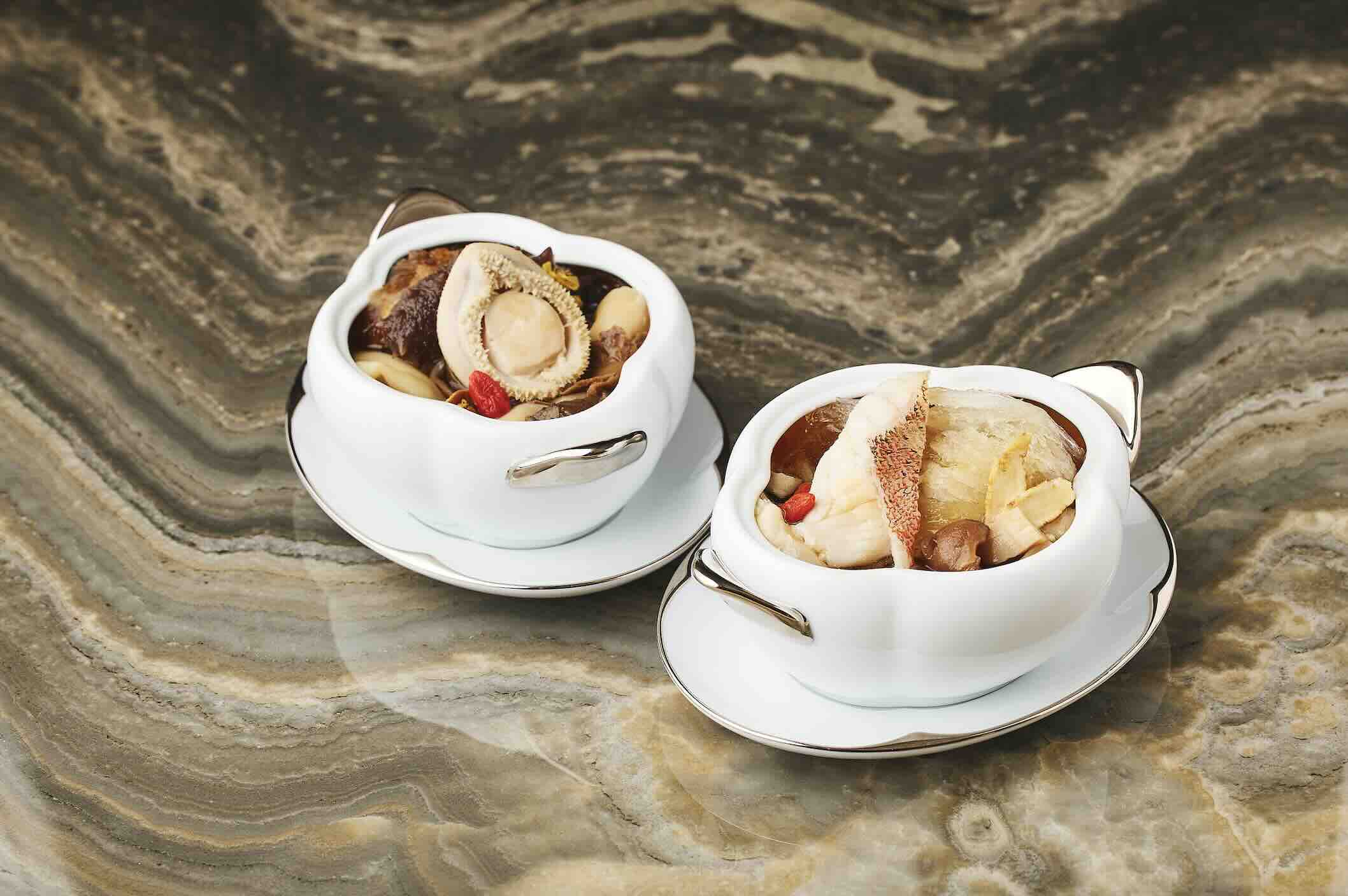 The menu—which includes a la carte dishes and tasting sets—changes with the seasons, ensuring peak freshness of ingredients and that every dish nourishes from within. The offerings are diverse, featuring flavourful double-boiled soups made with superior stock simmered for 12 hours with old hen and Jinghua ham, vibrant seafood dishes made with live produce delivered daily, and aromatic stir-fried dishes infused with the “dragon’s breath” in a cast iron wok specially forged in Hong Kong. Each dish highlights the millennia-old traditions of Cantonese cuisine, showcasing the chefs’ skill and dedication.