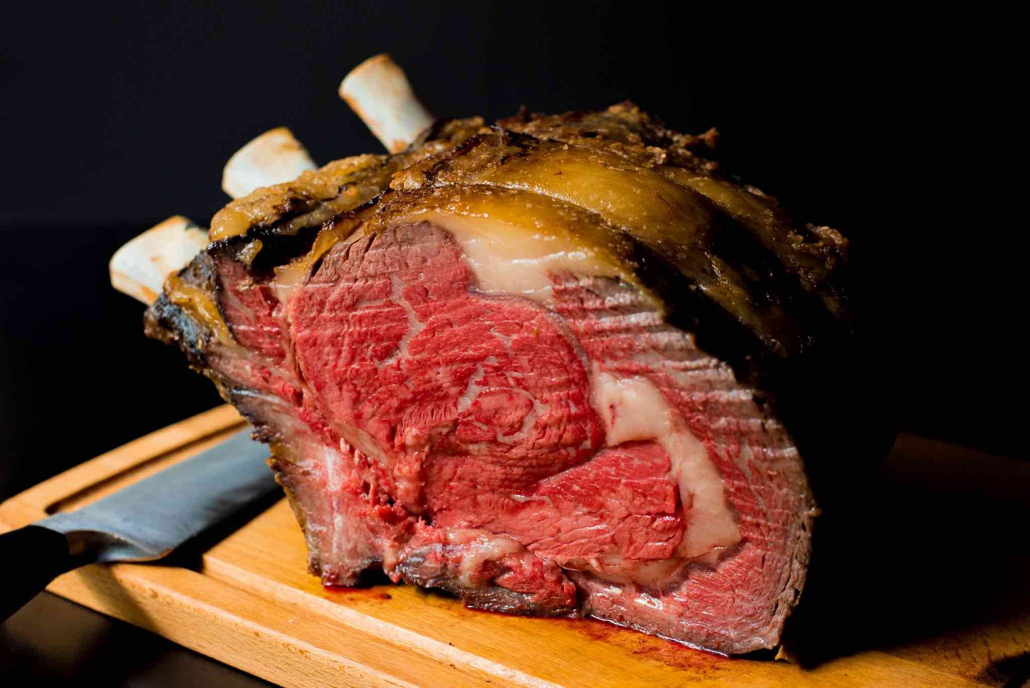 Absolutely the king of all roasts. A hunk of richly marbled beef slow-roasted on the bone. Great meat is the start and slow roasting is the key. By slowly roasting at low temperature, the meat gently cooks to your desired doneness and produces a beautifully even doneness throughout the whole roast. The extended roasting time also helps to intensify the beefy flavour and allows for natural tenderising to happen.