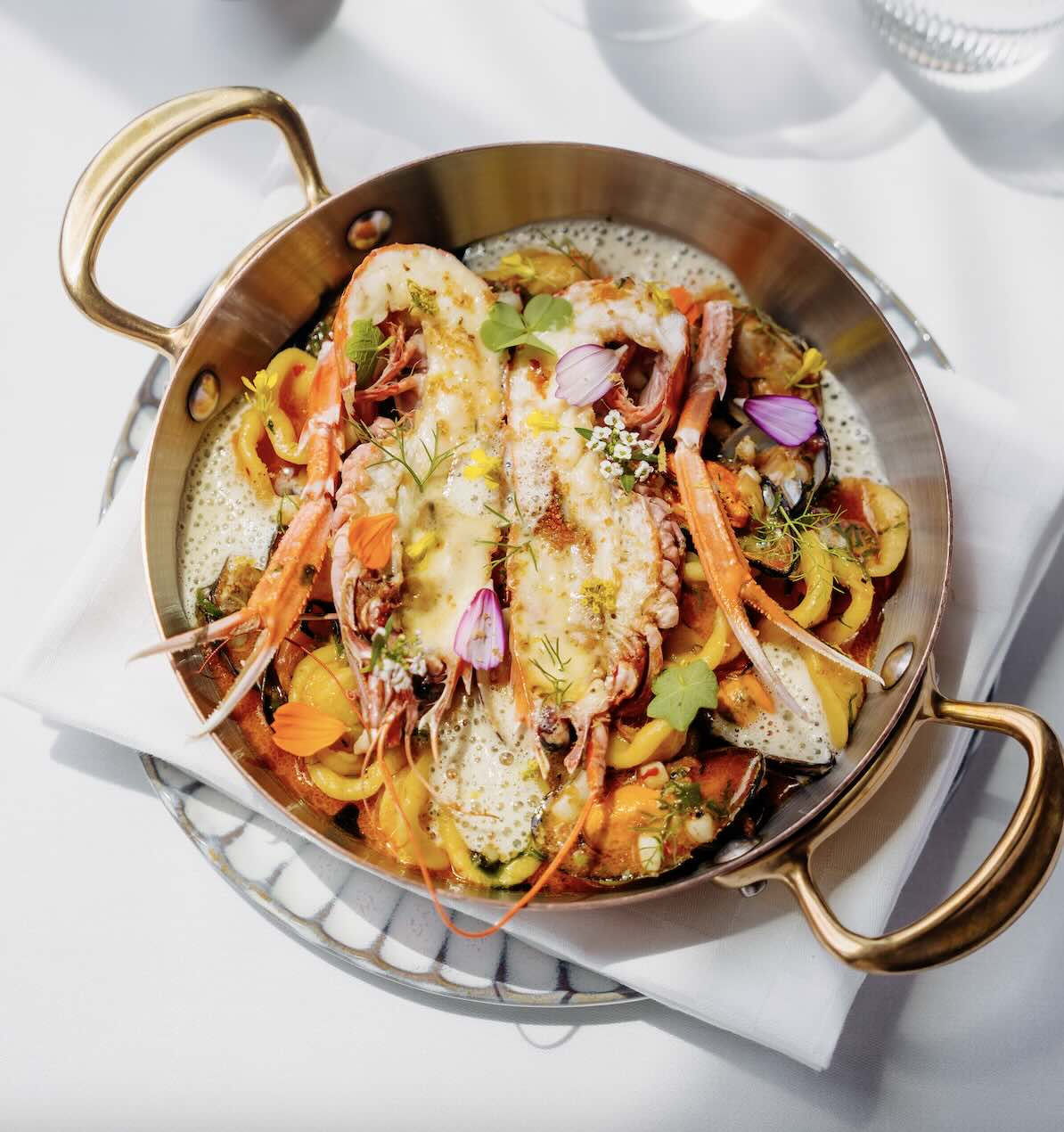 From 12pm to 3pm, Sundays at Le Pristine are a celebration of abundance and flair. Priced at S$135 per person, brunch features a seafood bar (think Irish Mor oysters, tuna, gambero rosso), handcrafted cold plates, live stations serving ravioli ricotta verbena and barbecue gambero, and a sweet finish with tiramisu, soft-serve and chocolate tart. Add on a 2.5-hour free-flow package from S$50, including Bloody Marys, spritzes, Negroni flasks and French wines, or go full luxe with Dom Pérignon.