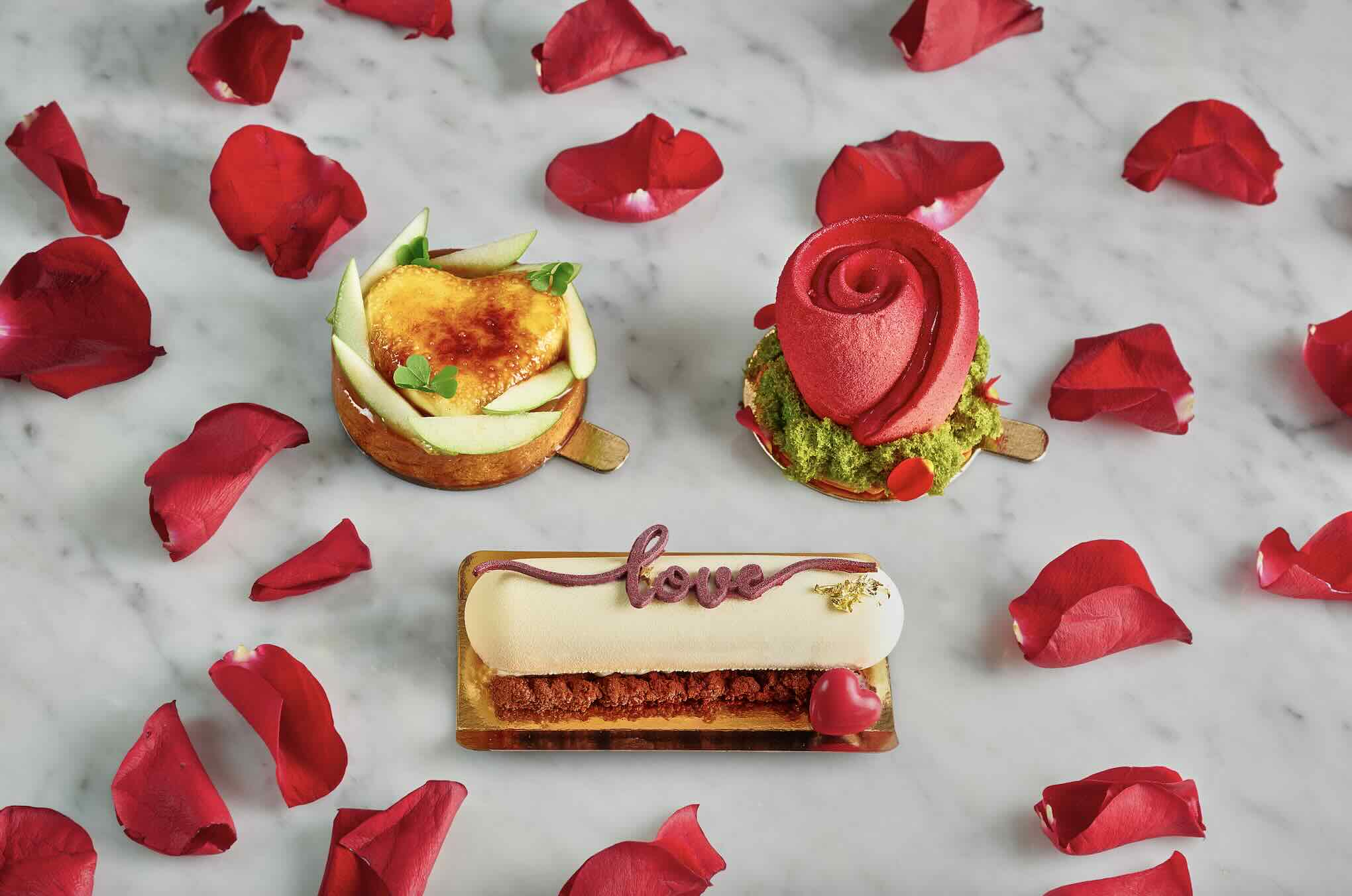 If you prefer celebrating at home, The Stamford Brasserie offers luxurious Grab & Go Valentine’s treats from 7 to 15 February. Enjoy an exquisite bouquet of 12 roses paired with 12 handcrafted macarons for $188+ per set. Alternatively, pick up decadent pastries like Pernod Cherry Chocolate Gâteaux and Apple Crème Brûlée Tart at $13+ per piece.