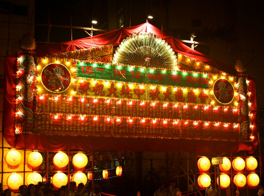Besides mooncakes and reunion dinner, the Tai Hang Fire Dragon Dance is also a famous and popular activity in Hong Kong for the Mid-Autumn Festival. So what is this Fire Dragon Dance? Well, it all started with the legend that in the 19th century when a few days before the Mid-Autumn Festival a typhoon and then a plague wreaked havoc on the village of Tai Hang. Whilst the villagers were repairing the damage, a python (believed to the son of the Dragon King) entered the village and ate their livestock. A soothsayer then decreed the only way to stop the chaos was to stage a fire dance for three days and nights during the upcoming festival. The villages made a huge dragon of straw and covered it with lit incense sticks. Accompanied by drummers and erupting firecrackers, they danced for three days and nights, and the plague disappeared. The Fire Dragon Dance continued to this day for three days over the Mid-Autumn Festival.
