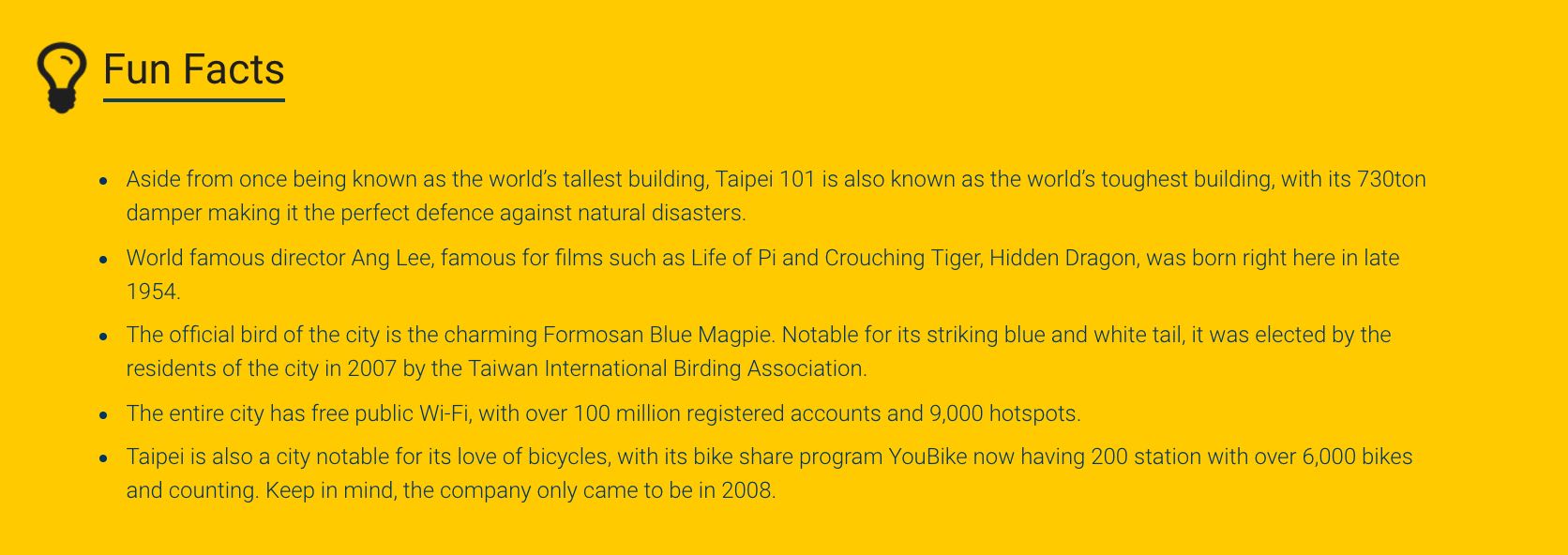 Trip planning can be pretty exhausting. Rest your tired mind over some light-hearted fun facts on Taipei city, we can start again once you are ready!
