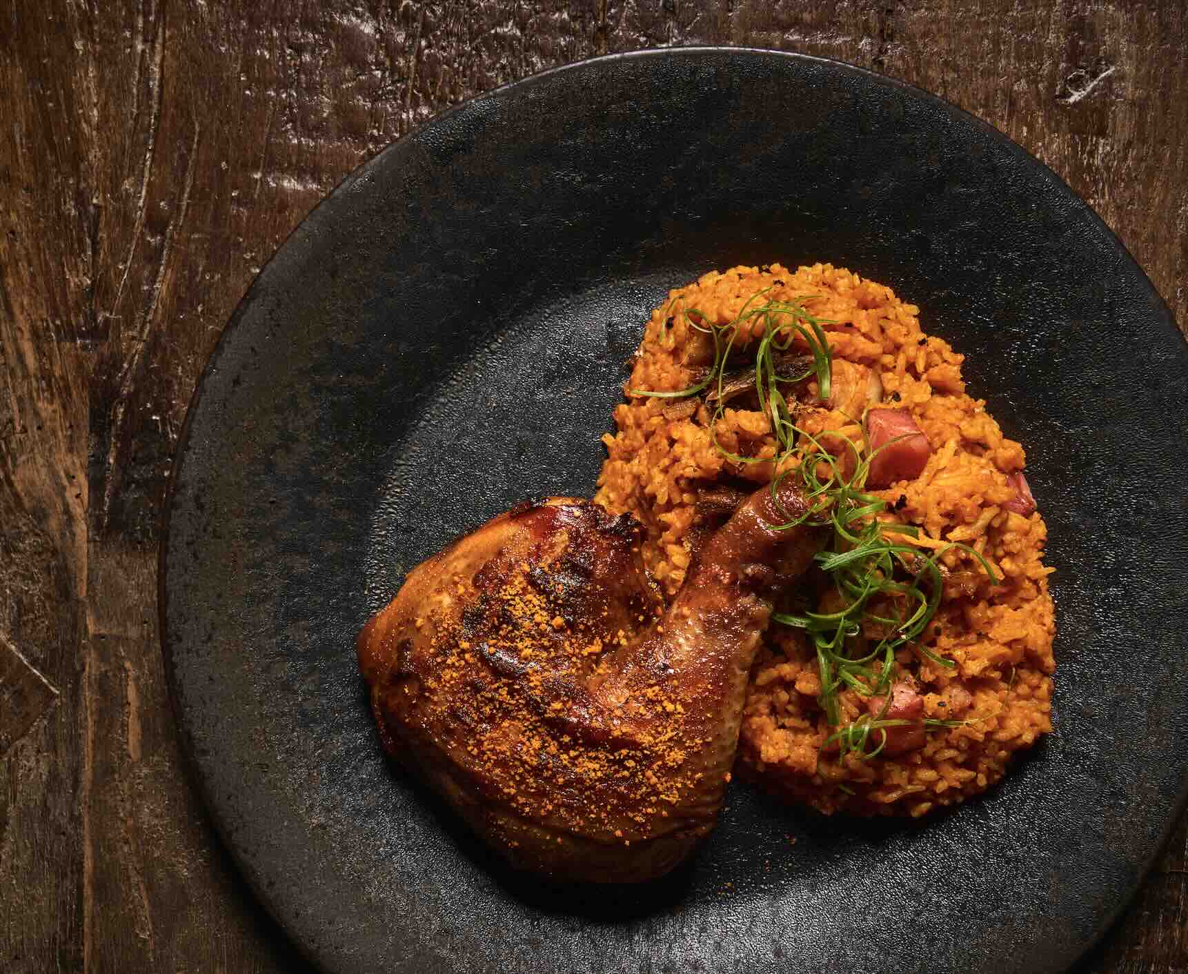 Housed within the cool shade of the restaurant’s thatched roof, guests can choose from beloved staples such as Jollof Rice with sofrito, Sakura chicken, and smoked pork belly; Tapalapa bread with goat’s milk ricotta, drizzled with house-smoked honey and smoked bacon butter.