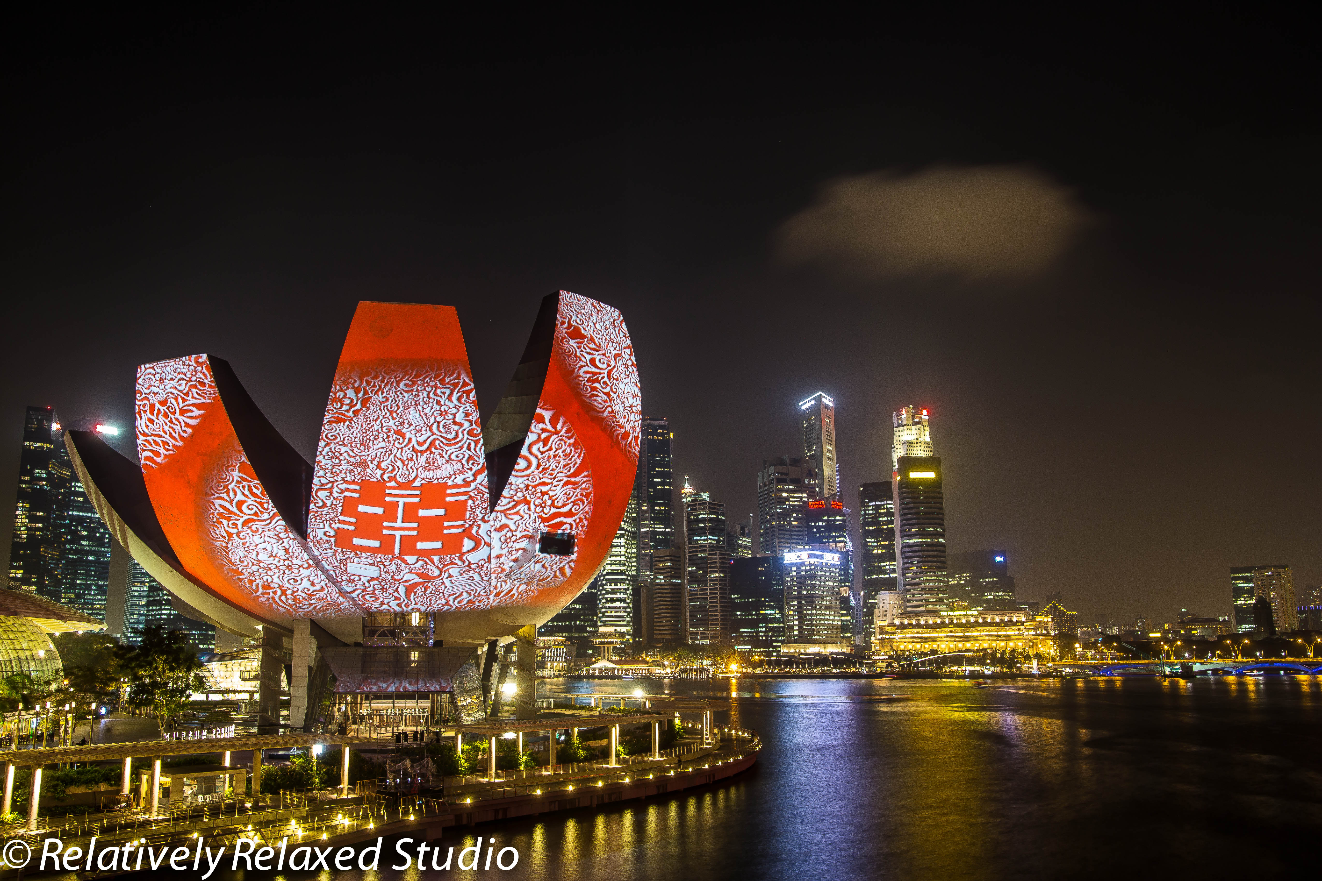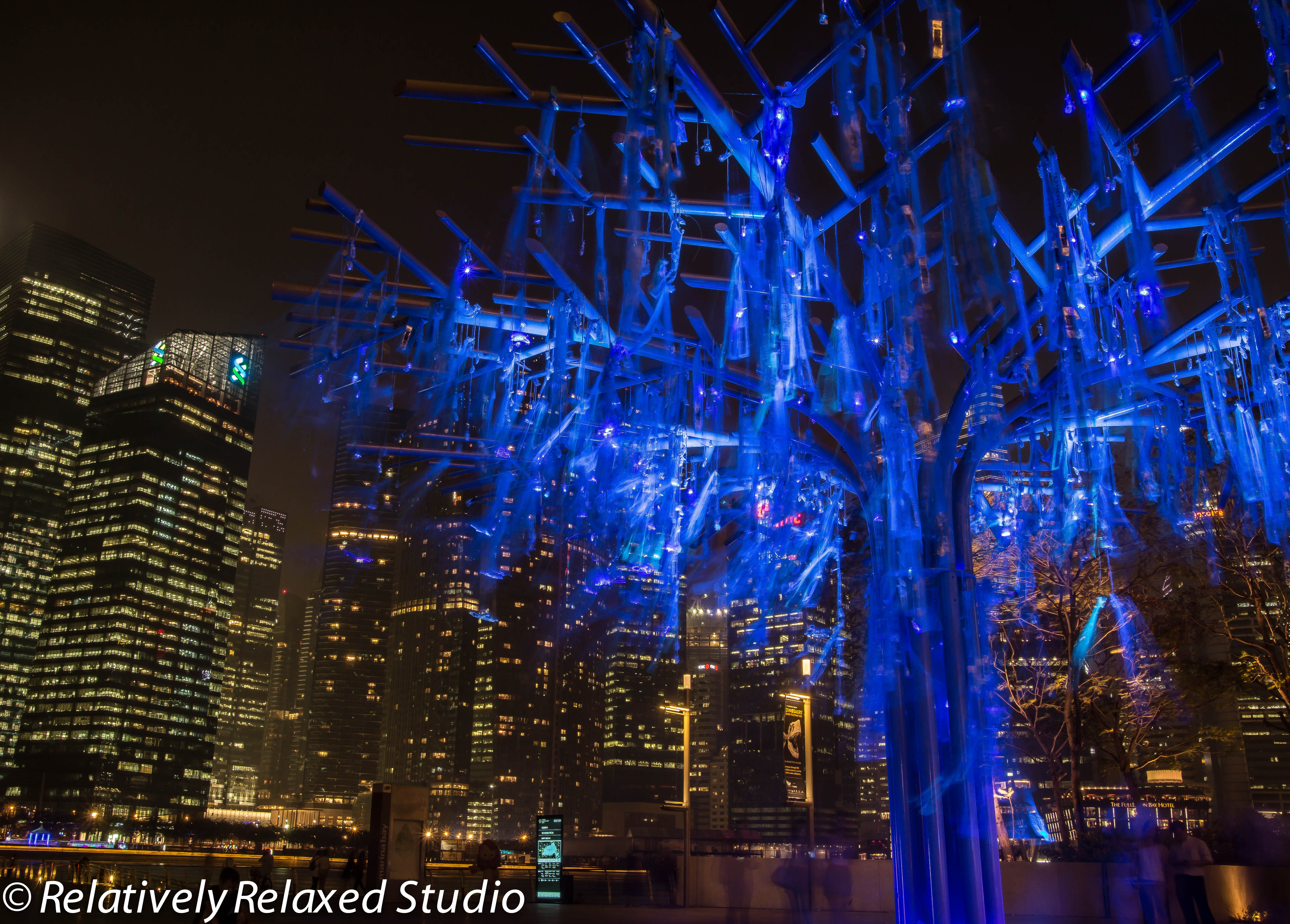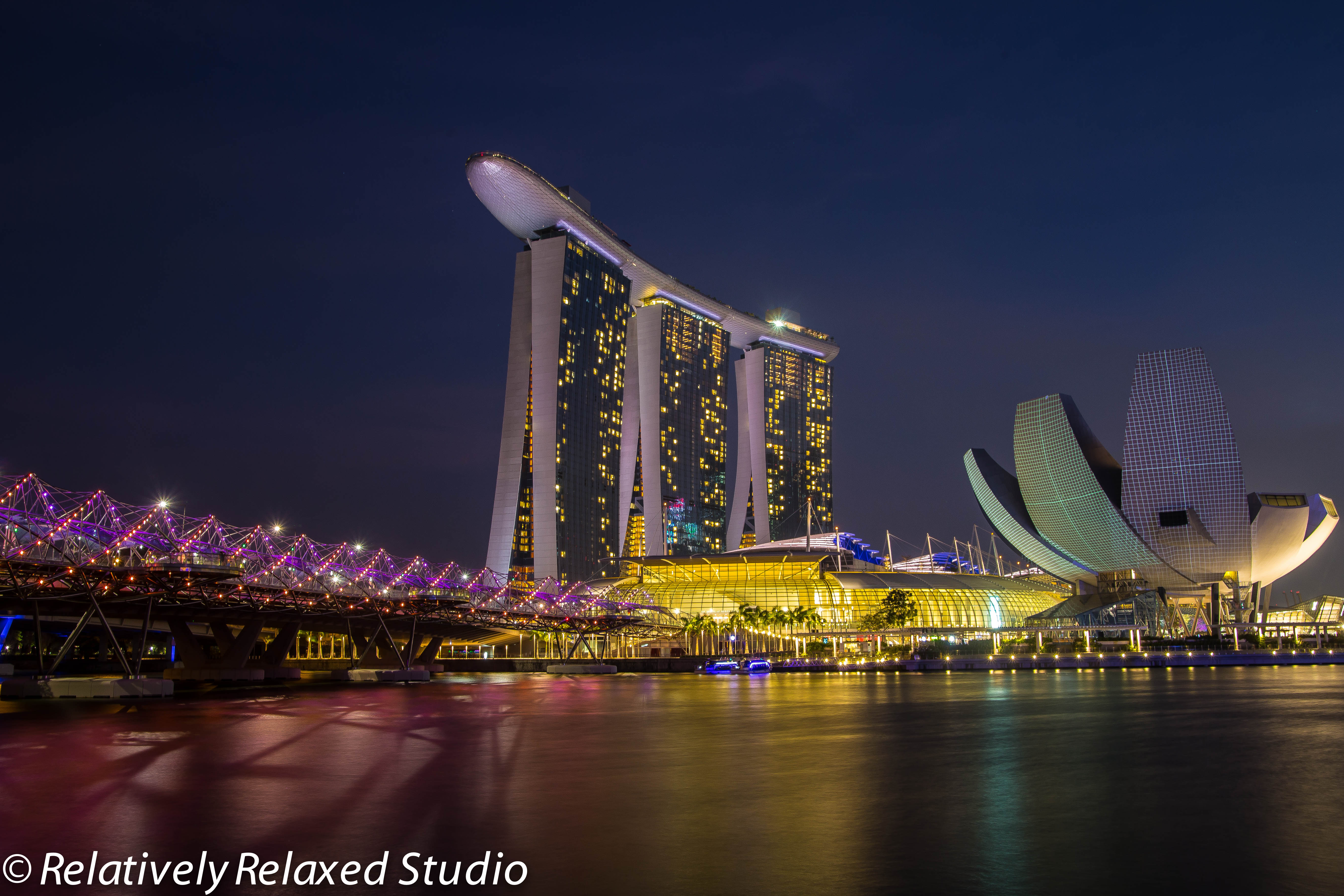 I positioned myself along one of the viewing ledges along the helix bridge ( the one with the largest collection of tripods is your best bet) and set up our tripods and waited.
